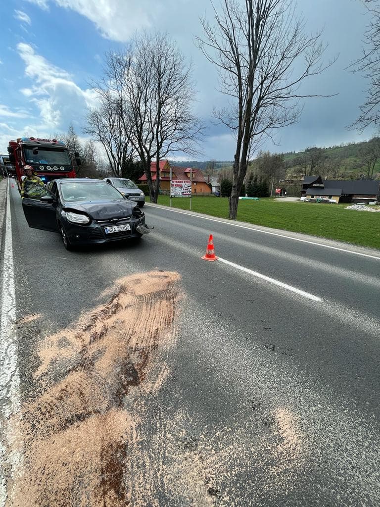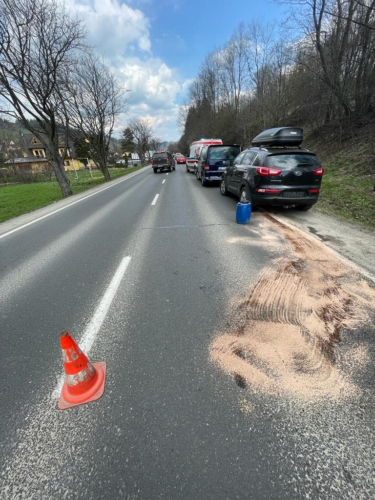 W dniu 2 maja 2022 roku o godzinie 12:34 Dyżurny SKKP odebrał zgłoszenie o zderzeniu trzech samochodów osobowych na prostym odcinku DK 47 w miejscowości Zakopane. Ford Fokus uderzył w tył jadącego przed nim samochodu KIA, który następnie najechał na poprzedzający go samochód VW Multivan. Pojazdami łącznie podróżowało 14 osób w tym 6 dzieci. W chwili przyjazdu straży pożarnej wszyscy uczestnicy zdarzenia znajdowali się poza samochodami na poboczu drogi. W wyniku przeprowadzonego rozpoznania ustalono, że poszkodowana jest 1 osoba, która wymagała udzielenia pomocy przedmedycznej. Kobieta uskarżała się na ból odcinka szyjnego kręgosłupa. W badaniu urazowym nie stwierdzono zewnętrznych obrażeń, ustabilizowano odcinek szyjny, zapewniono komfort psychiczny i termiczny do czasu przyjazdu ZRM. Po przyjeździe karetki poszkodowana została przekazana załodze ZRM. Ponadto działania straży pożarnej polegały na zabezpieczeniu wycieki płynów eksploatacyjnych z rozbitych samochodów, kierowaniu ruchem drogowym (ruch odbywał się wahadłowo). Po wykonaniu niezbędnych medycznych działań medycznych osoba poszkodowana została przewieziona do Szpitala Powiatowego w Zakopanem. Przybyły na miejsce patrol Policji podjął czynności służbowe, po ich zakończeniu droga została uprzątnięta z kawałków rozbitej karoserii, usunięto plamę rozlanych płynów eksploatacyjnych. Dwa rozbite pojazdy zostały usunięte na pobocze a trzeci zabrany przez pomoc drogową. Przywrócono całkowicie ruch drogowy. W działaniach brał udział zastęp GBARt2,5/16, ZRM Zakopane, Policja Zakopane.