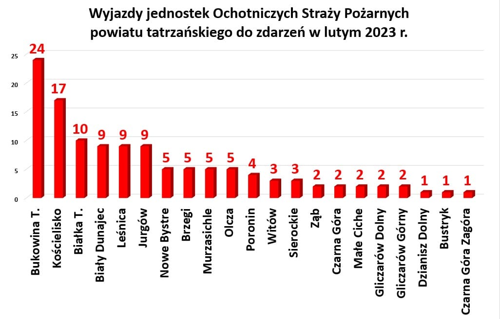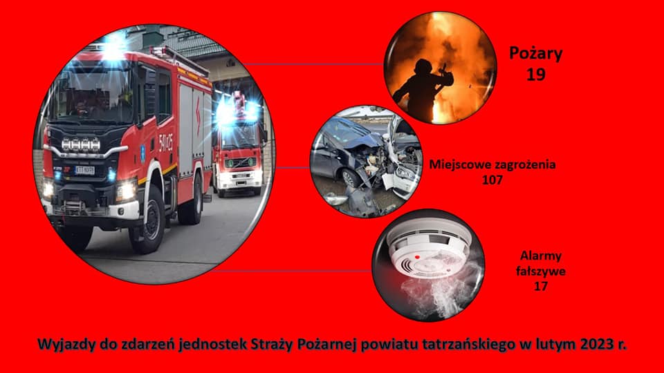 Zestawienie wyjazdów do zdarzeń jednostek Straży Pożarnej powiatu tatrzańskiego w lutym 2023 r.