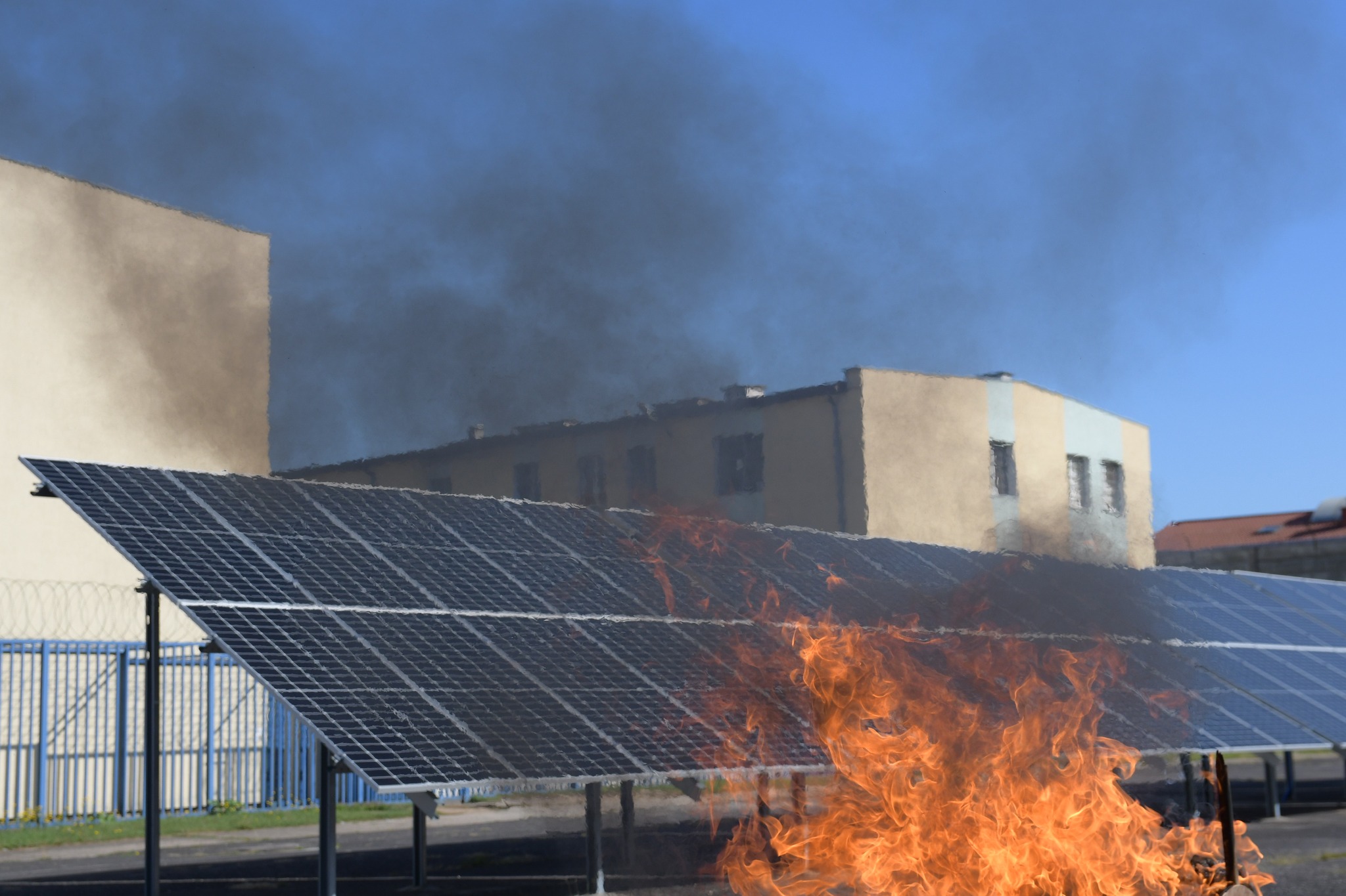 Pożar instalacji fotowoltaicznej to jeden ze epizodów ćwiczeń zorganizowanych przez Zakład Karny w Czerwonym Borze. W związku dużym zadymianiem jednego z obiektów zachodziła również konieczność ewakuacji więźniów w nim osadzonych. W ćwiczeniach udział brały zastępy z JRG Zambrów, funkcjonariusze ZK oraz funkcjonariusze KPP.
