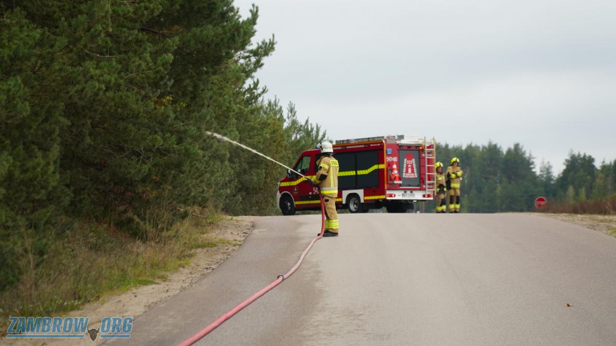 W drugim scenariuszu wyładowania atmosferyczne spowodowały pożar lasu między miejscowościami Radwany-Zaorze a Zaręby-Jartuzy. Silny, porywisty wiatr rozprzestrzeniał ogień w stronę Szumowa, co zagrażało bezpośrednio trzem zabudowaniom umiejscowionym w pobliżu lasu. Jednostki zostały zadysponowane do punktu czerpania wody po żwirowni. Ćwiczenie polegało na sprawnym dostarczeniu wody na dalekie odległości metodą przetłaczania. Do zdarzenia zadysponowane zostały wszystkie jednostki z gminy Szumowo oraz zastęp JRG w Zambrowie.