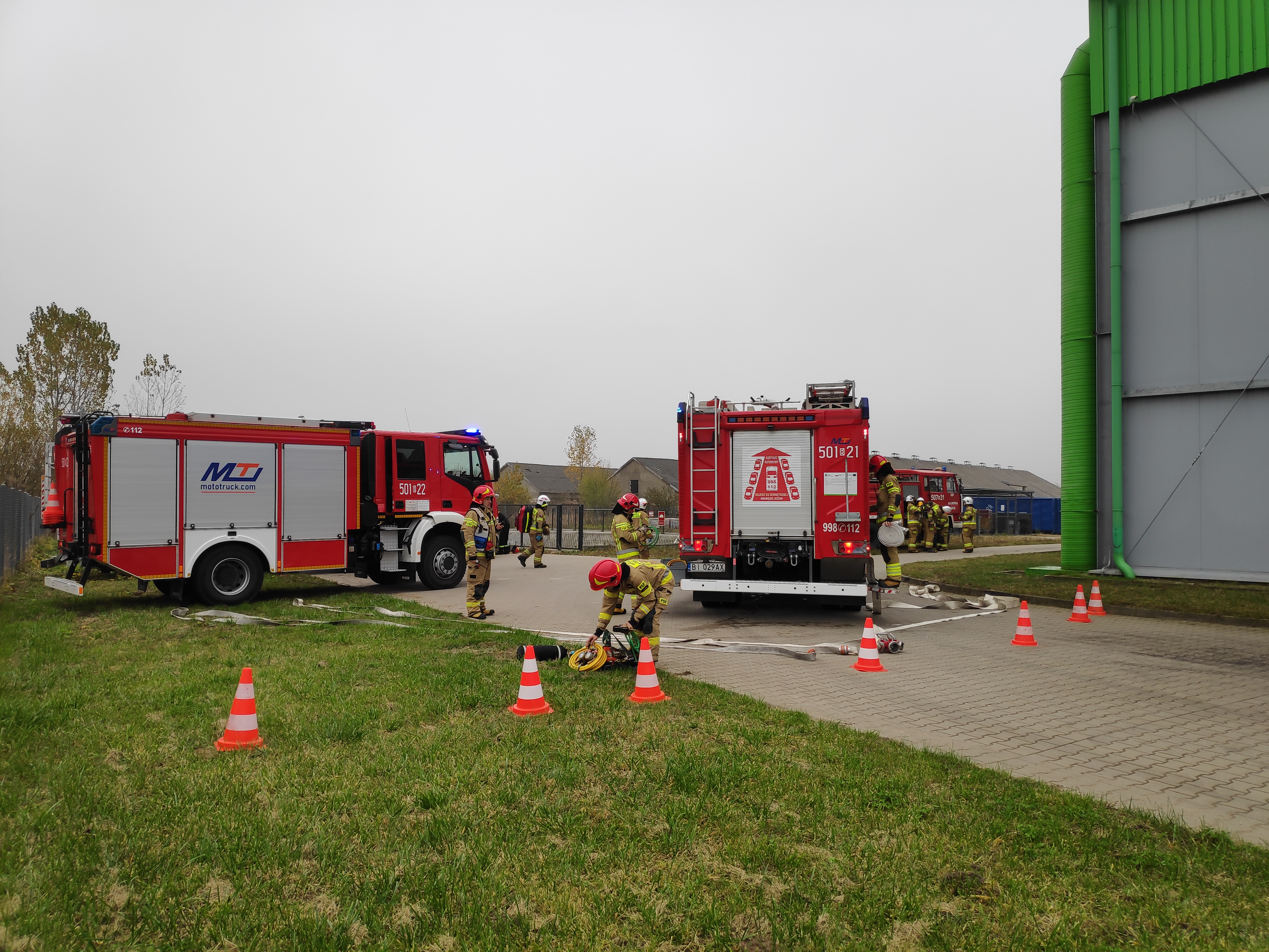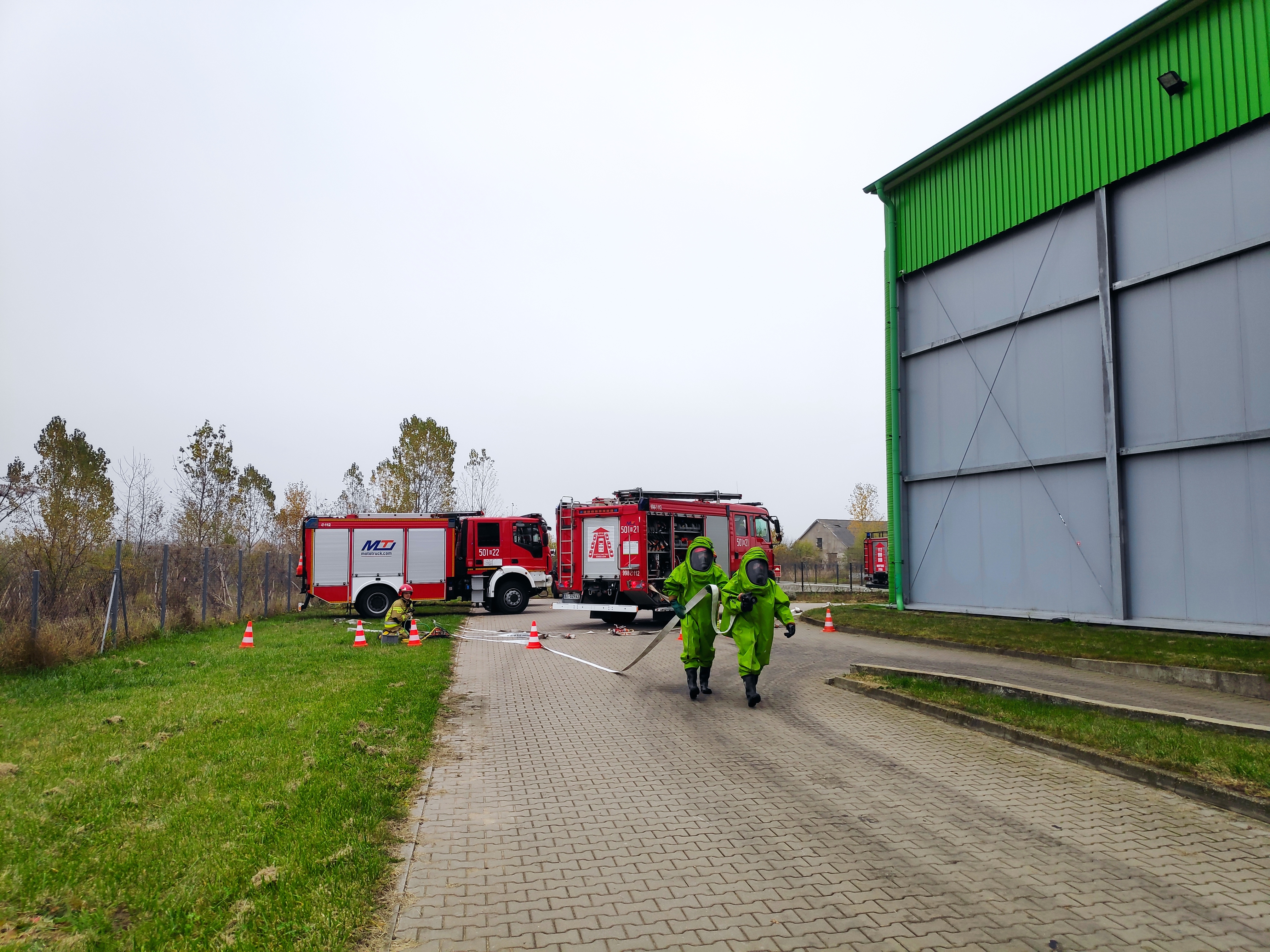Ćwiczenia z zakresu ratownictwa chemiczno-ekologicznego na terenie firmy BHJ w miejscowości Grądy-Woniecko