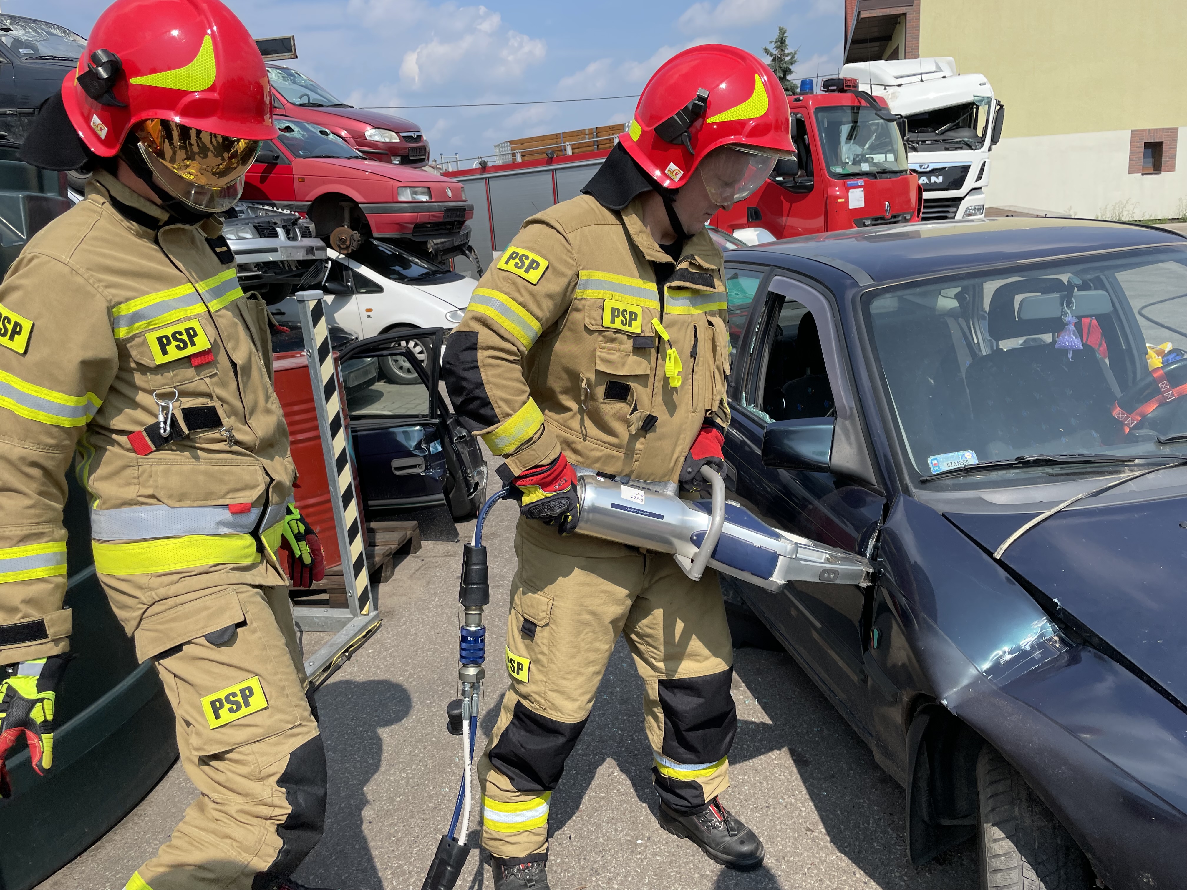 ćwiczenia zambrowskich strażaków z zakresu ratownictwa technicznego