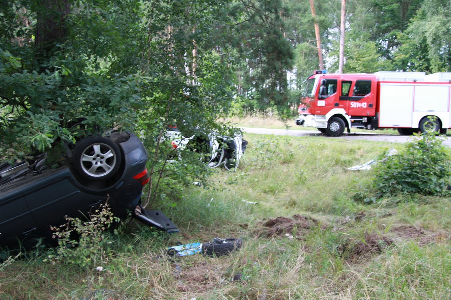 Dachowanie dwóch samochodów na skrzyżowaniu dróg Łady Borowe/Modzele-Wypychy/Szeligi-Leśnica