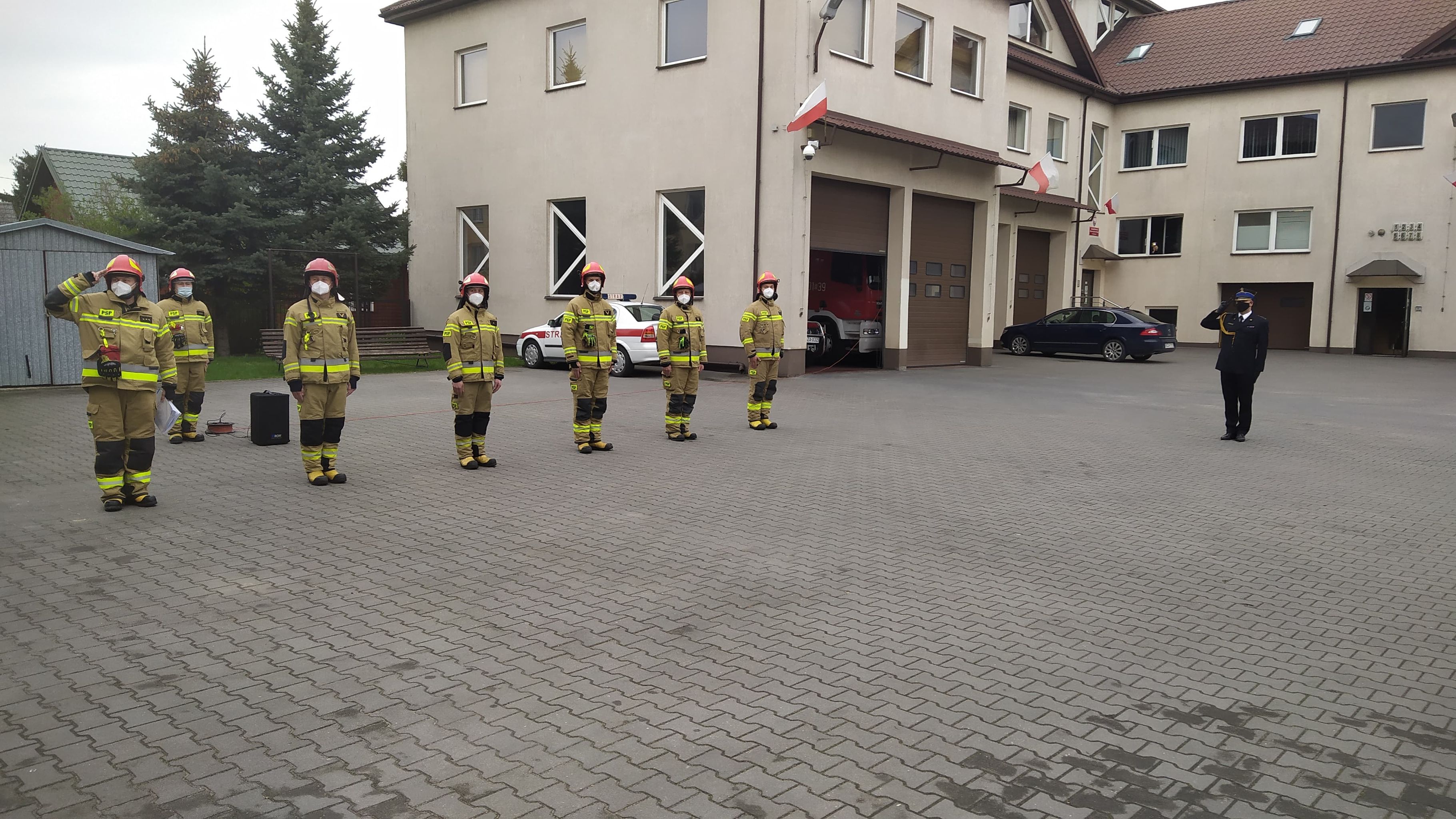 W ten oto symboliczny sposób strażacy Jednostki Ratowniczo Gaśniczej w Zambrowie oddali cześć symbolom narodowym oraz wyrazili swój szacunek oraz patriotyzm.