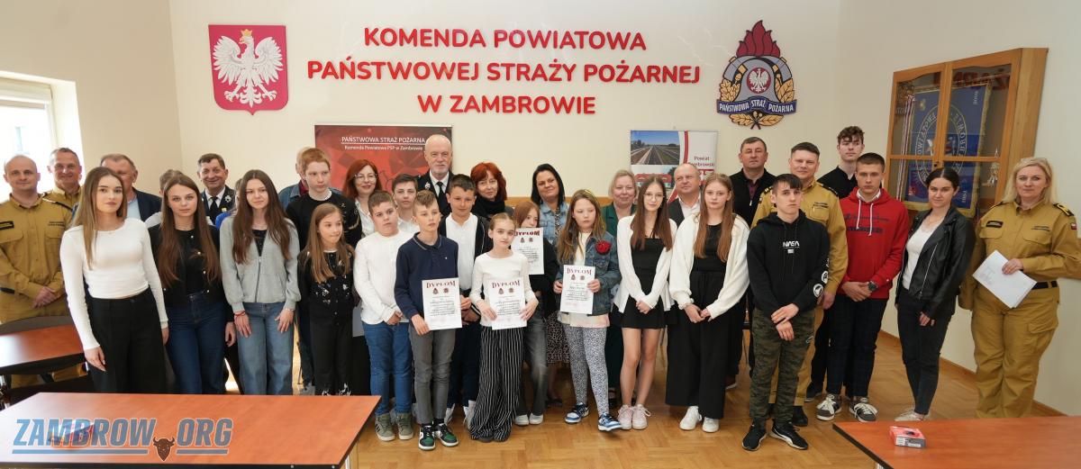 Komisja w składzie kpt. Mateusz Czarnowski, mł. kpt. Mateusz Chmielewski, st. ogn. Marek Brzóska, st. ogn. Agnieszka Mioduszewska z KP PSP w Zambrowie po sprawdzeniu testów pisemnych (3 rodzaje dla poszczególnych grup) zawierających 40 zamkniętych pytań, w finale ustnym wyłoniła zwycięzców eliminacji powiatowych, którymi zostali następujący uczniowie: