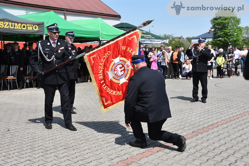 Następnie dokonano wręczenia dowodu rejestracyjnego i kluczyków do samochodu pożarniczego przez zaproszonych gości. Poświęcenia sztandaru oraz pojazdu dokonał proboszcz Parafii pw. NMP Częstochowskiej w Szumowie ksiądz Sławomir Grodecki.