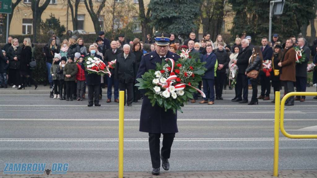 W czwartek 11 listopada 2021 r. na placu Komendy Powiatowej Państwowej Straży Pożarnej w Zambrowie, w ramach obchodów 103 rocznicy odzyskania przez Polskę niepodległości, włączając się w organizowaną przez Biuro Programu „Niepodległa” akcję „Niepodległa do hymnu”, odbyło się uroczyste podniesienie flagi państwowej połączone z odśpiewaniem hymnu państwowego przy uczestnictwie strażaków z Jednostki Ratowniczo-Gaśniczej KP PSP w Zambrowie pod dowództwem Zastępcy Komendanta Powiatowego PSP w Zambrowie bryg. Adama Wysmułka. Ponadto Komendant Powiatowy PSP st. bryg. Krzysztof Konicki i Poczet Sztandarowy Komendy Powiatowej PSP w Zambrowie wzięli udział w miejskich obchodach Narodowego Święta Niepodległości.