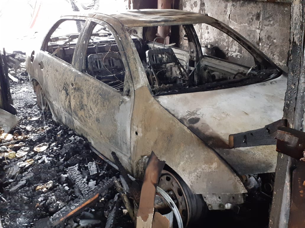 Całkowitemu spaleniu uległ garaż murowany oraz samochód osobowy. Straty oszacowano na około 50 tys. zł.