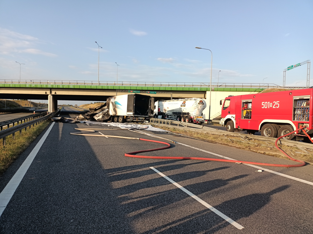 W chwili przyjazdu jednostek straży pożarnej, samochód ciężarowy wraz z naczepą znajdował się na jezdni całkowicie objęty ogniem. Kierowca bez obrażeń opuścił pojazd przed przybyciem służb.