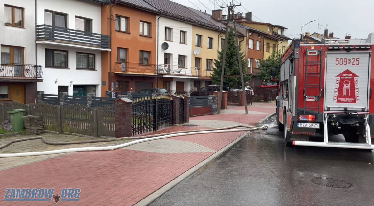 Pożar stodoło-obory w miejscowości Srebrna oraz intensywne opady deszczu na terenie powiatu zambrowskiego