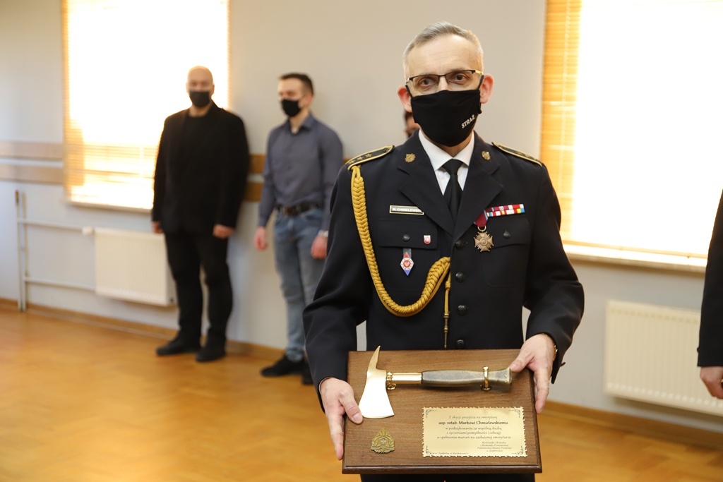 Od dnia 1 lutego 2021 r. po ponad 32 latach służby na świadczenie emerytalne przeszedł Kierownik sekcji kwatermistrzowsko – technicznej Pan asp. sztab Marek Chmielewski. Swoją pożarniczą drogę zawodową rozpoczął od podjęcia nauki w Szkole Chorążych Pożarnictwa w Poznaniu w latach 1988 – 1990. Po ukończeniu nauki podjął służbę w Komendzie Rejonowej Straży Pożarnych w Zambrowie. Z chwilą powołania Państwowej Straży Pożarnej nadal pełnił służbę w Komendzie Rejonowej w Zambrowie ale już w strukturach PSP. Zgodnie z reformą administracyjną państwa od 1999 r. zaczęły funkcjonować powiaty, w tym Powiat Zambrowski. Komenda Rejonowa została przekształcona w Komendę Powiatową Państwowej Straży Pożarnej w Zambrowie, w której asp. sztab. Marek Chmielewski od 1 kwietnia 1999 r. do dnia dzisiejszego był Kierownikiem sekcji kwatermistrzowsko – technicznej.