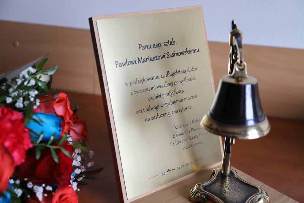 Pożegnanie ze służbą pracownika Komendy Powiatowej PSP w Zambrowie asp. sztab. Pawła Mariusza Sasinowskiego