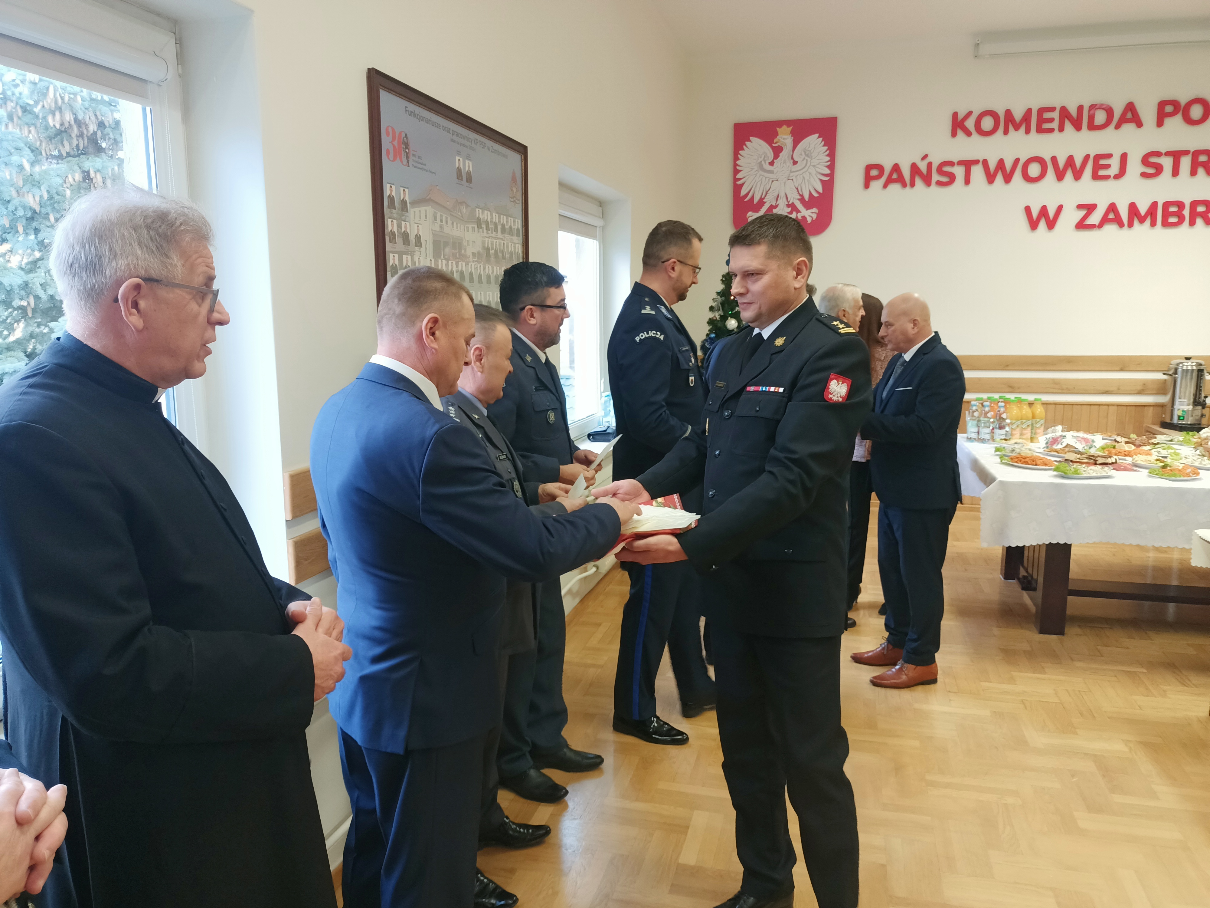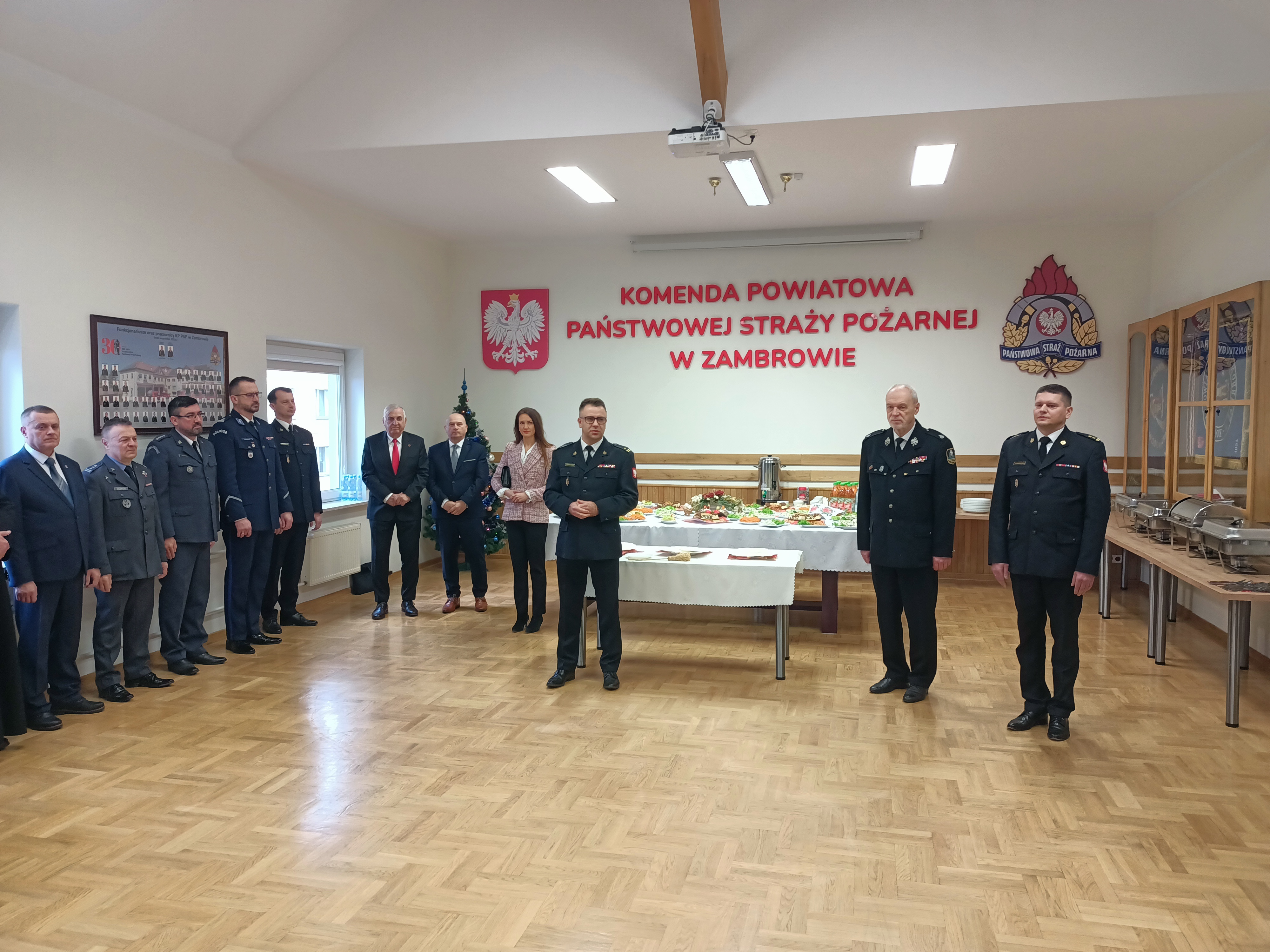W ciepłej i serdecznej atmosferze uczestnicy spotkania odmówili wspólną modlitwę, łamali się opłatkiem i składali sobie życzenia. Komendant Powiatowy PSP w Zambrowie, bryg. Andrzej Kalinowski, podziękował strażakom za ich trudną i odpowiedzialną służbę, podkreślając ich zaangażowanie w zapewnienie bezpieczeństwa mieszkańcom powiatu.