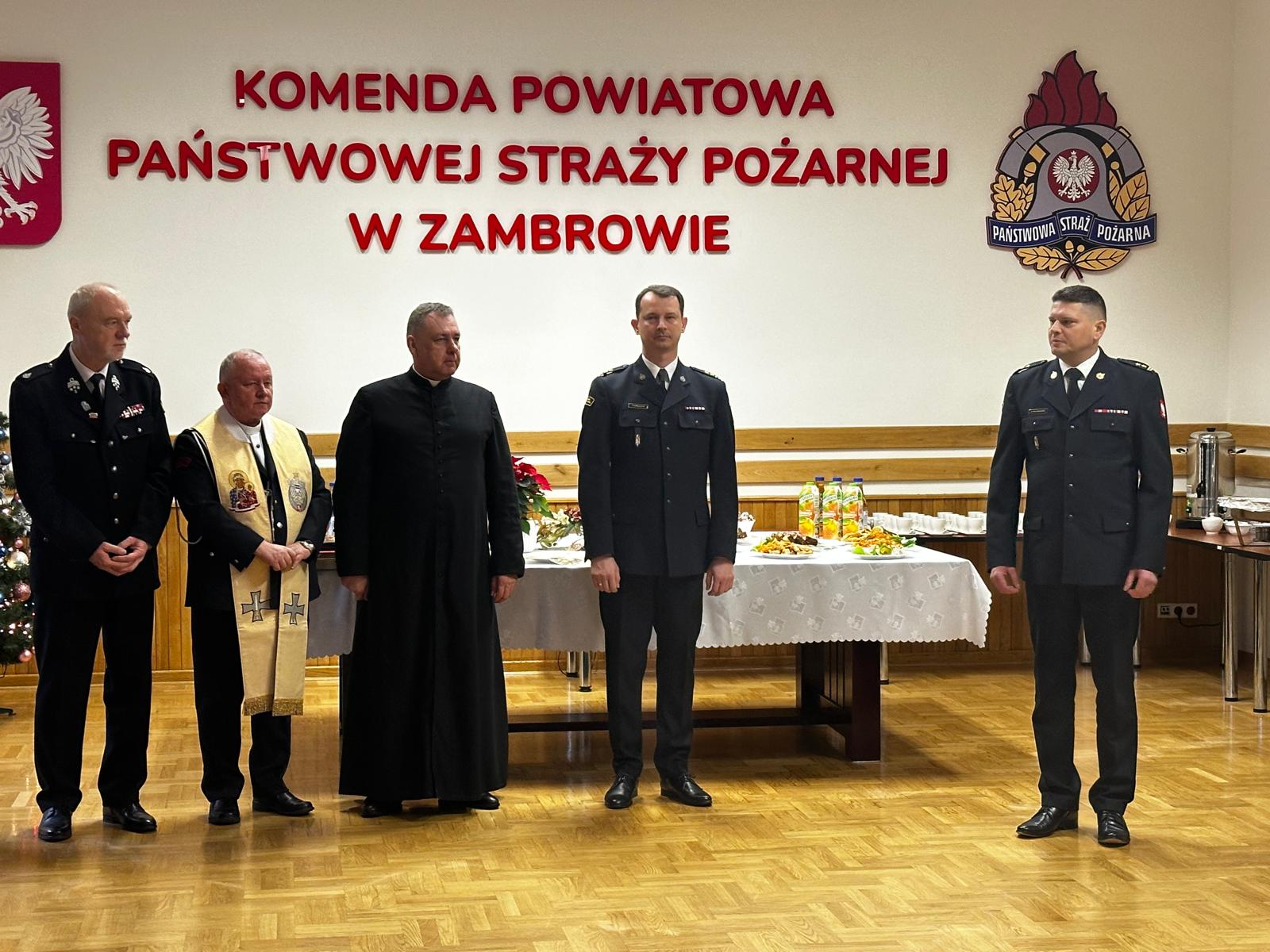 Komendant Powiatowy PSP w Zambrowie bryg. Andrzej Kalinowski złożył wszystkim funkcjonariuszom, pracownikom, zaproszonym gościom i ochotnikom z powiatu zambrowskiego życzenia błogosławionych świąt, szczęścia, spokoju ducha i wszelkiej pomyślności w życiu osobistym oraz zawodowym w nowym 2025 r.