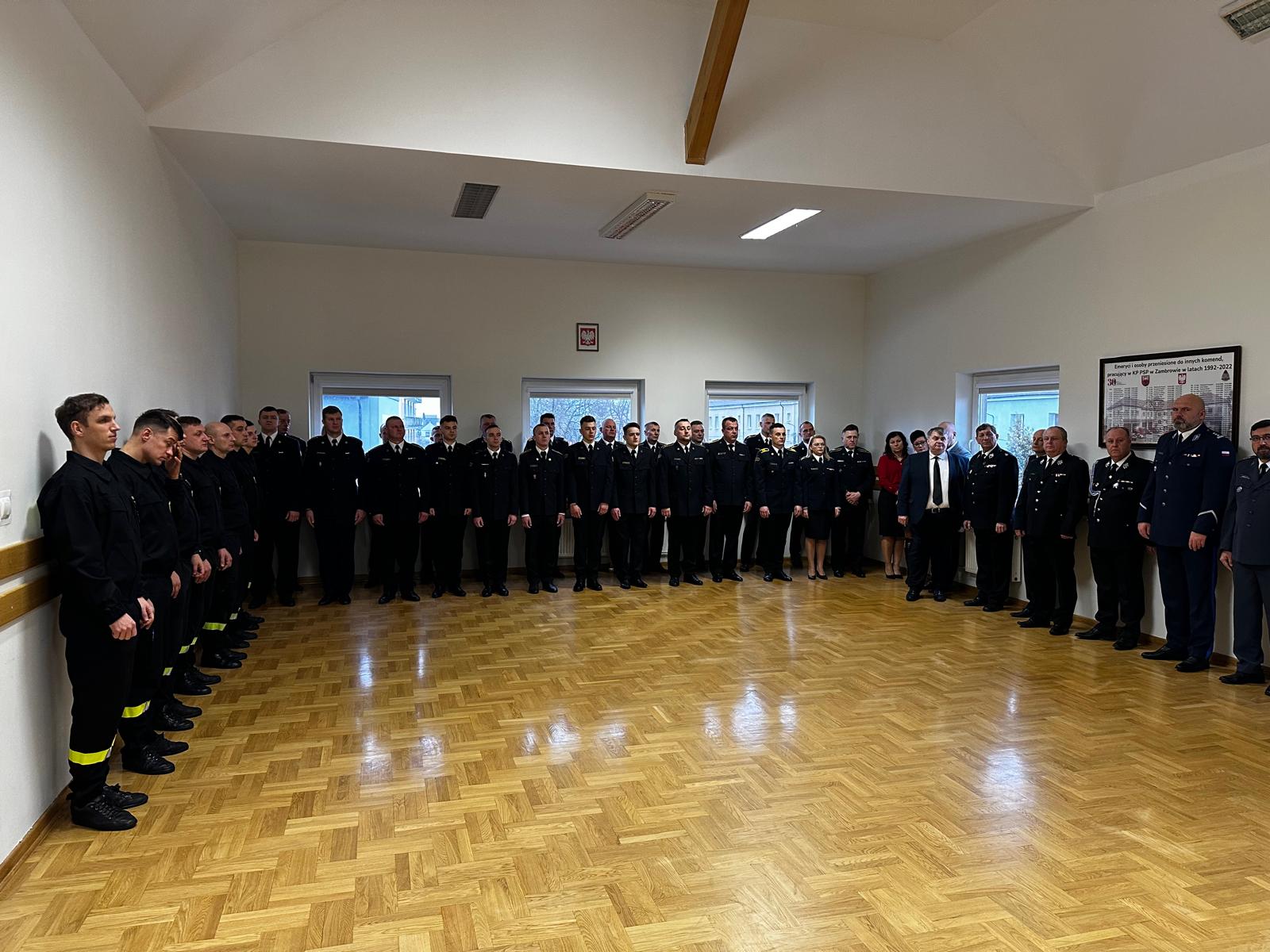 W dniu 17 grudnia br. w Komendzie Powiatowej Państwowej Straży Pożarnej w Zambrowie, w związku z nadchodzącymi Świętami Bożego Narodzenia, odbyło się uroczyste spotkanie opłatkowe. Uczestniczyli w nim: Komendant Powiatowy PSP bryg. Andrzej Kalinowski, zastępca Komendanta Powiatowego bryg. Tomasz Kirejczyk strażacy i pracownicy Komendy Powiatowej PSP w Zambrowie oraz zaproszeni goście, wśród których byli m.in.: Senator RP Prezes Zarządu Oddziału Powiatowego ZOSP RP dh Marek Adam Komorowski, Starosta Zambrowski Edyta Marchelska - Groszfeld, Komendant Powiatowy Policji inspektor Artur Maksymiuk, Burmistrz Miasta Zambrów Kazimierz Dąbrowski, wójtowie gmin powiatu zambrowskiego oraz Prezesi Zarządów Gminnych OSP. Swoją obecnością zaszczycił nas również powiatowy kapelan strażaków ks. kanonik Grzegorz Śniadach.