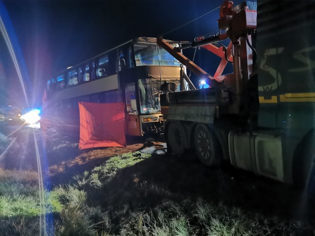 Według relacji Policji kierujący pojazdem ciężarowym obywatel Litwy po zakończeniu manewru wyprzedzania najechał na tył stojącego na poboczu uszkodzonego autobusu, zaczepionego do holownika.