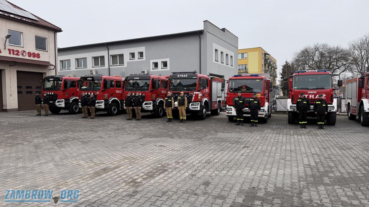 W dniu 29 listopada 2025 r. o godz. 14.00 na placu Komendy Powiatowej Państwowej Straży Pożarnej w Zambrowie odbyła się uroczysta zbiórka z okazji przekazania fabrycznie nowych samochodów pożarniczych jednostkom Ochotniczych Straży Pożarnych w Starym Laskowcu i Zbrzeźnicy. W uroczystościach brał udział Zastępca Podlaskiego Komendanta Wojewódzkiego PSP mł. bryg. Łukasz Chankowski, Komendant Powiatowy PSP w Zambrowie bryg. Andrzej Kalinowski oraz Zastępca Komendanta Powiatowego PSP w Zambrowie bryg. Tomasz Kirejczyk.