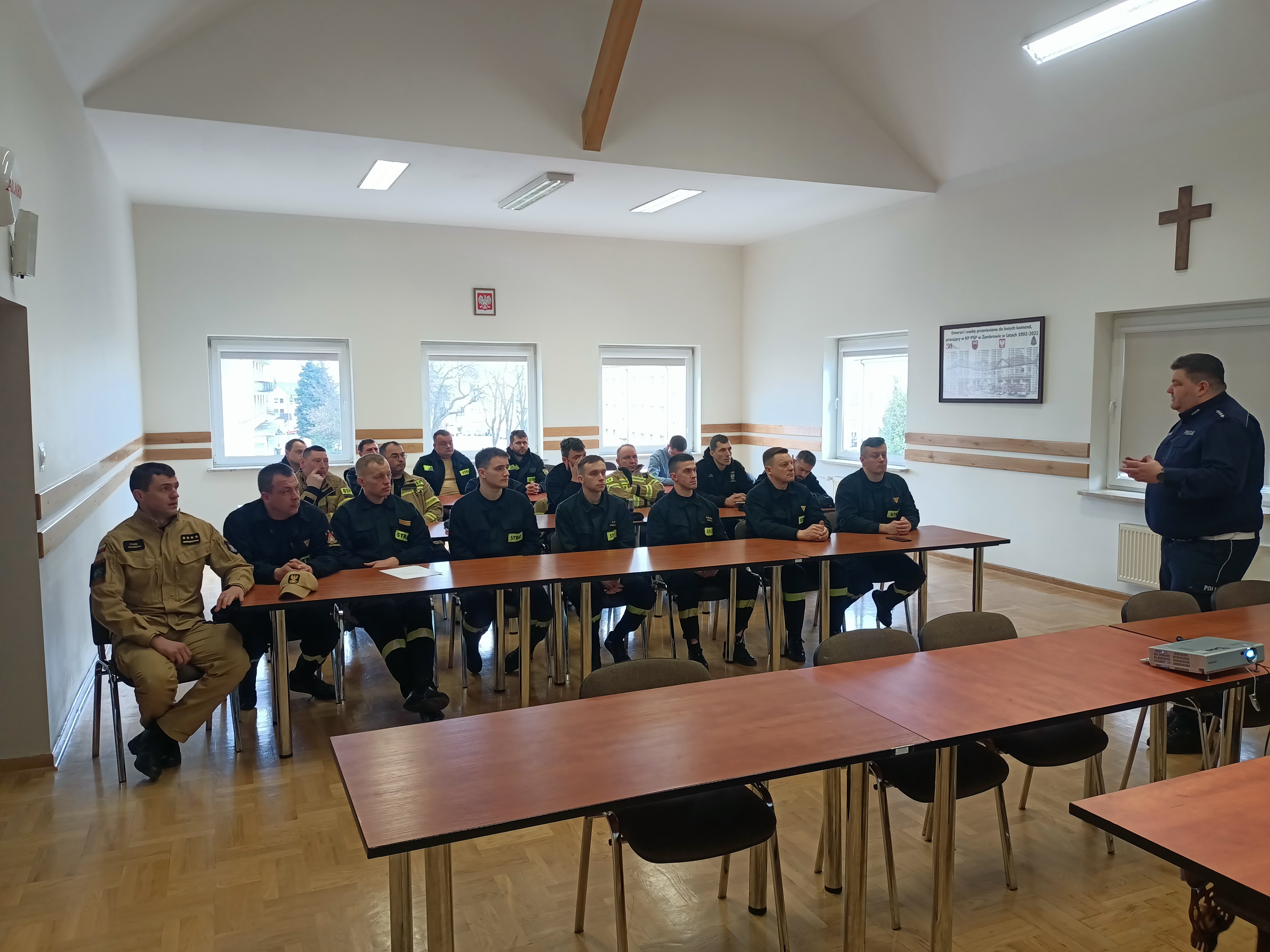 W dniach 22-24 marca 2025 roku w Komendzie Powiatowej PSP w Zambrowie odbyło się szkolenie z zakresu bezpiecznego poruszania się pojazdami uprzywilejowanymi w trakcie dojazdu do zdarzenia oraz szkolenie z zagrożeń związanych z prądem elektrycznym podczas prowadzenia działań ratowniczych. Pierwsze szkolenie odbyło się w formie wykładu oraz pogadanki przeprowadzonej przez funkcjonariuszy Wydziału Ruchu Drogowego Komendy Powiatowej Policji w Zambrowie. Szkolenie dot. zagrożeń związanych z prądem elektrycznym zostało przeprowadzone w formie wykładu na świetlicy KP PSP w Zambrowie przez kierownika Posterunku Energetycznego PGE w Zambrowie Pana Daniela Hankowskiego. Druga część szkolenia polegała na zapoznaniu z instalacją energetyczną znajdującą się na terenie Posterunku.