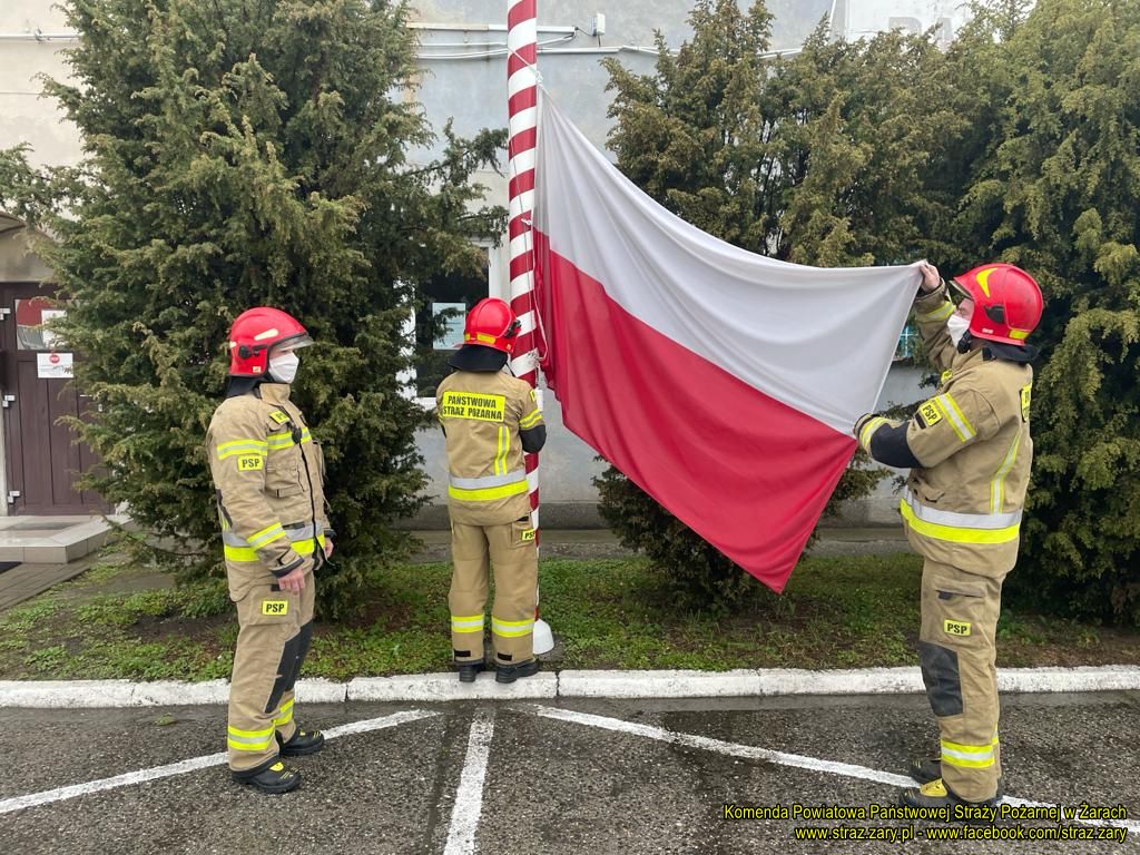 Komenda Powiatowa Państwowej Straży Pożarnej w Żarach włączyła się w uczczenie Święta Flagi Rzeczpospolitej Polskiej. Dzień Flagi Rzeczypospolitej Polskiej został ustanowiony przez Sejm w 2004 roku.