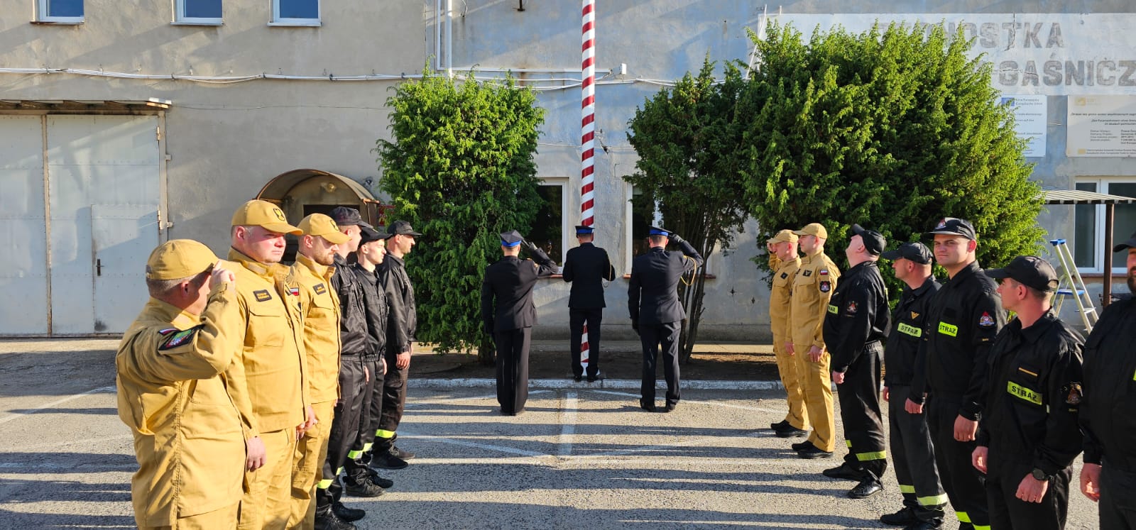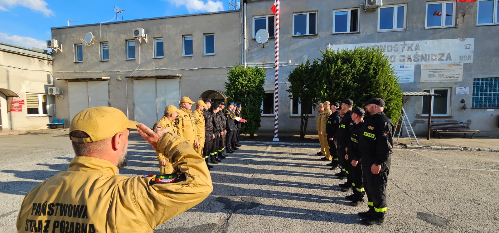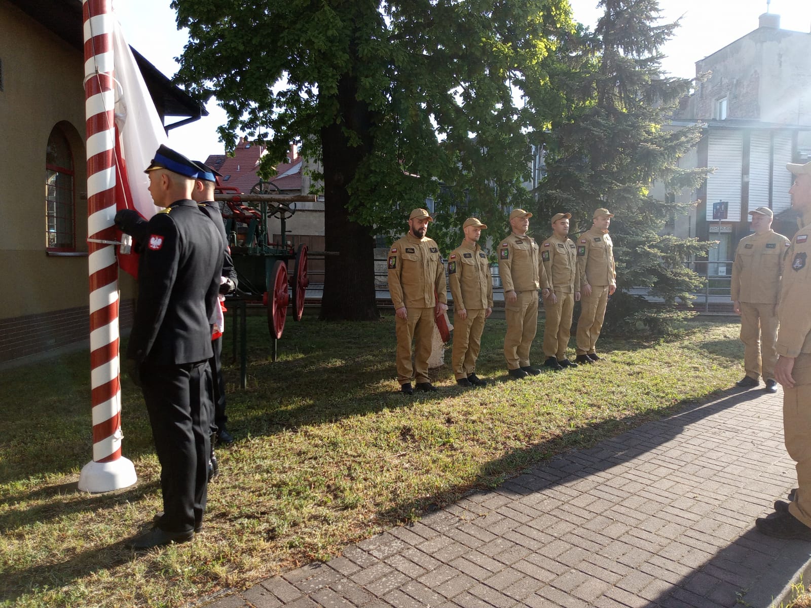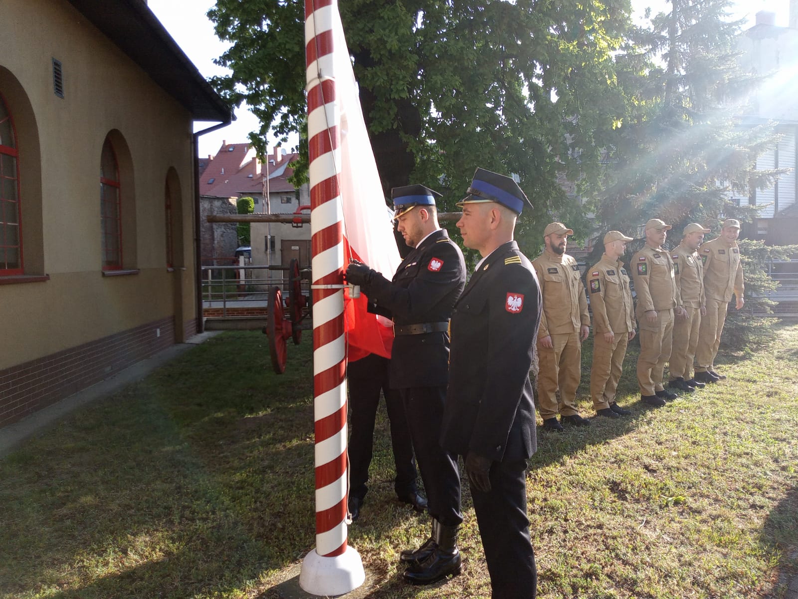 Strażacy z Jednostek Ratowniczo Gaśniczych Państwowej Straży Pożarnej w Żarach i Lubsku dokonali uroczystej zmiany służby z podniesieniem Flagi Państwowej na maszt.