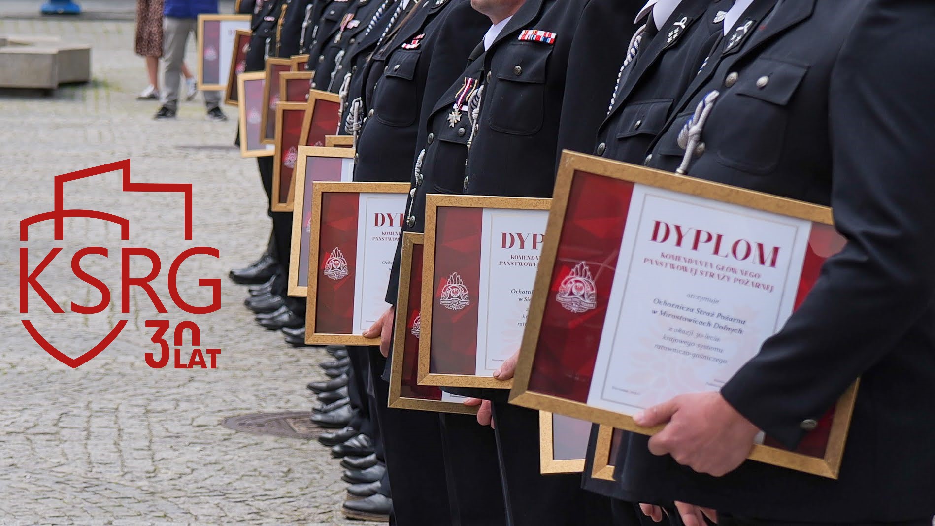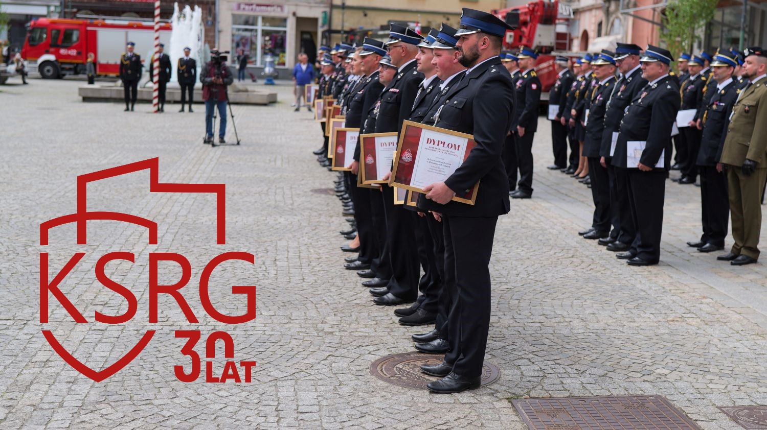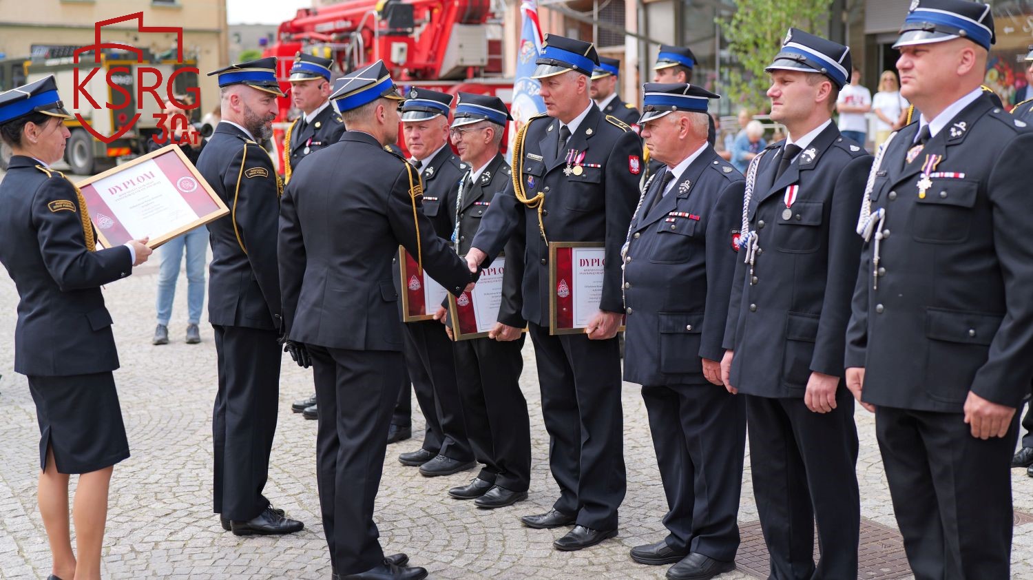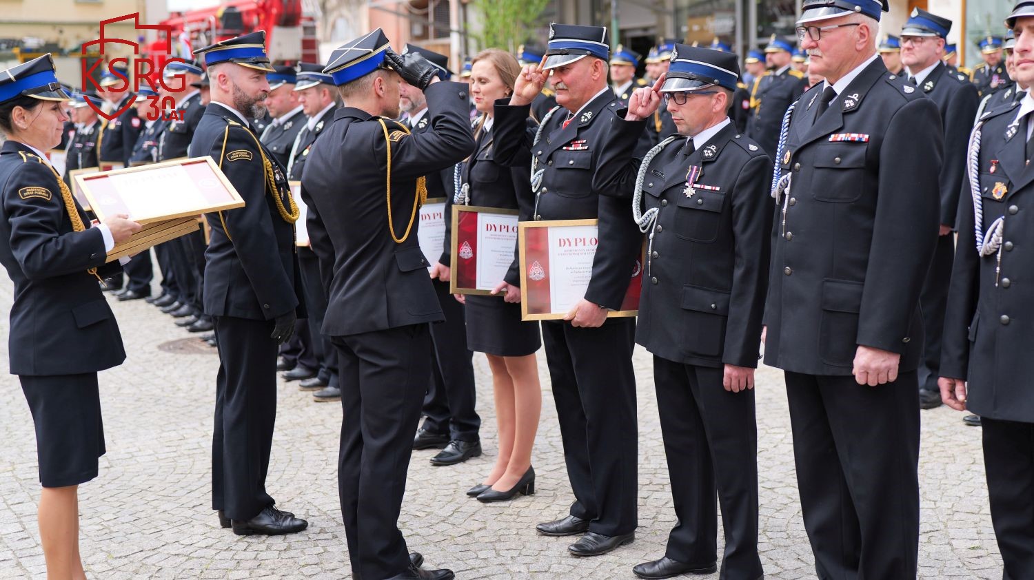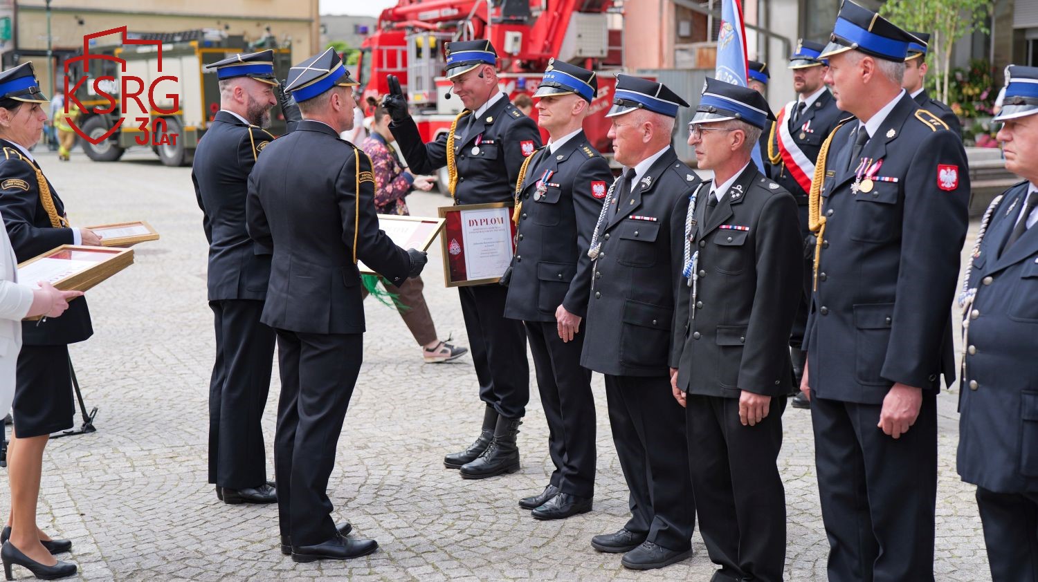 Podczas Powiatowych Obchodów Dnia Strażaka w Żarach dowódcy, prezesi i naczelnicy jednostek KSRG otrzymali dyplomy Komendanta Głównego Państwowej Straży Pożarnej z okazji jubileuszu 30 lecia KSRG.