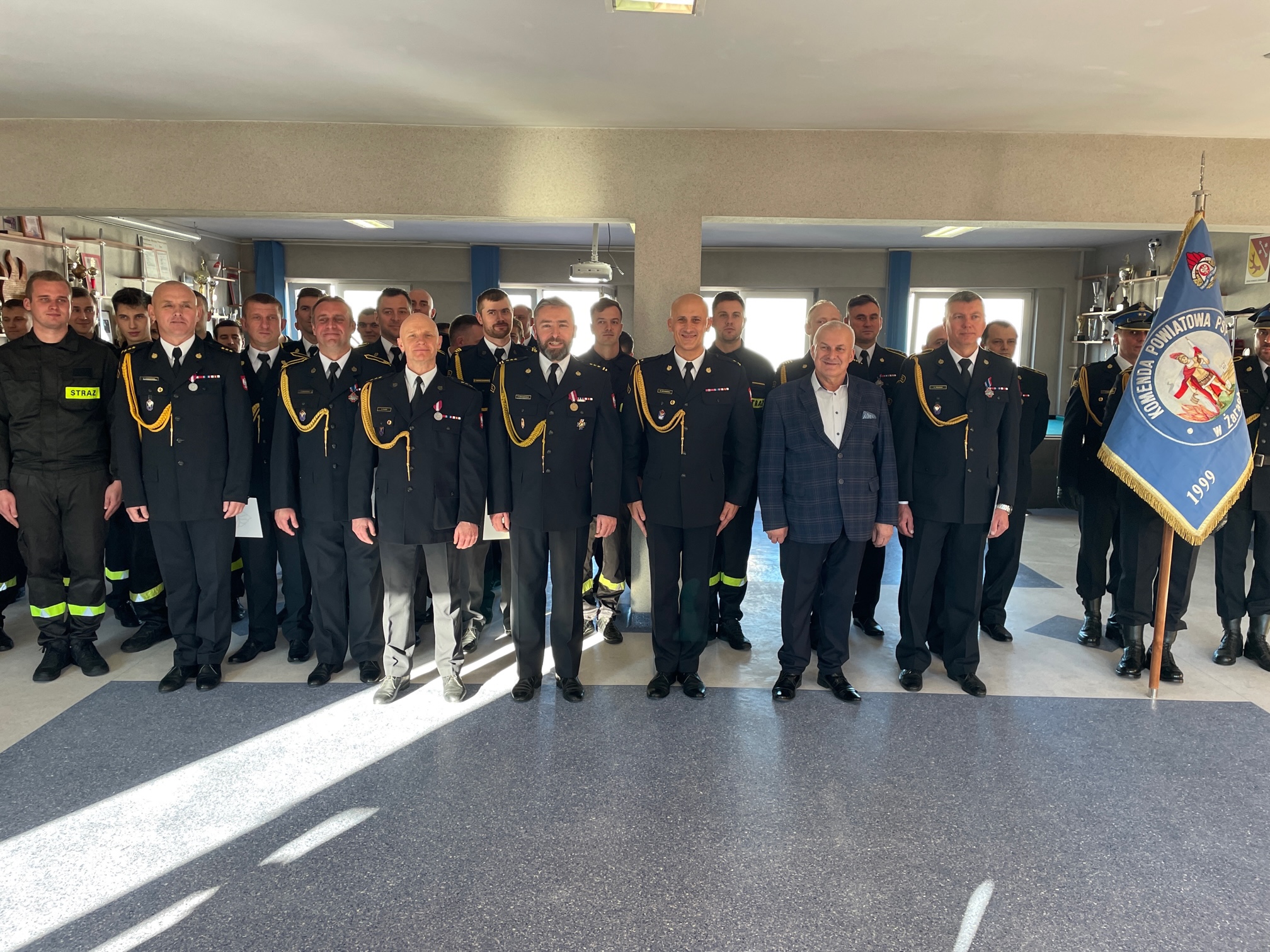 Komendant Powiatowy Państwowej Straży Pożarnej w Żarach wyróżnił członków komisji dokonujących przeglądu technicznego pojazdów oraz sprzętu silnikowego znajdującego się na wyposażeniu Komendy: Andrzeja KOCHAŃSKIEGO, Sebastiana HORODYSKIEGO, Daniela KOTWICKIEGO, Zbigniewa JANUSZEWSKIEGO, Piotra MAKOWSKIEGO