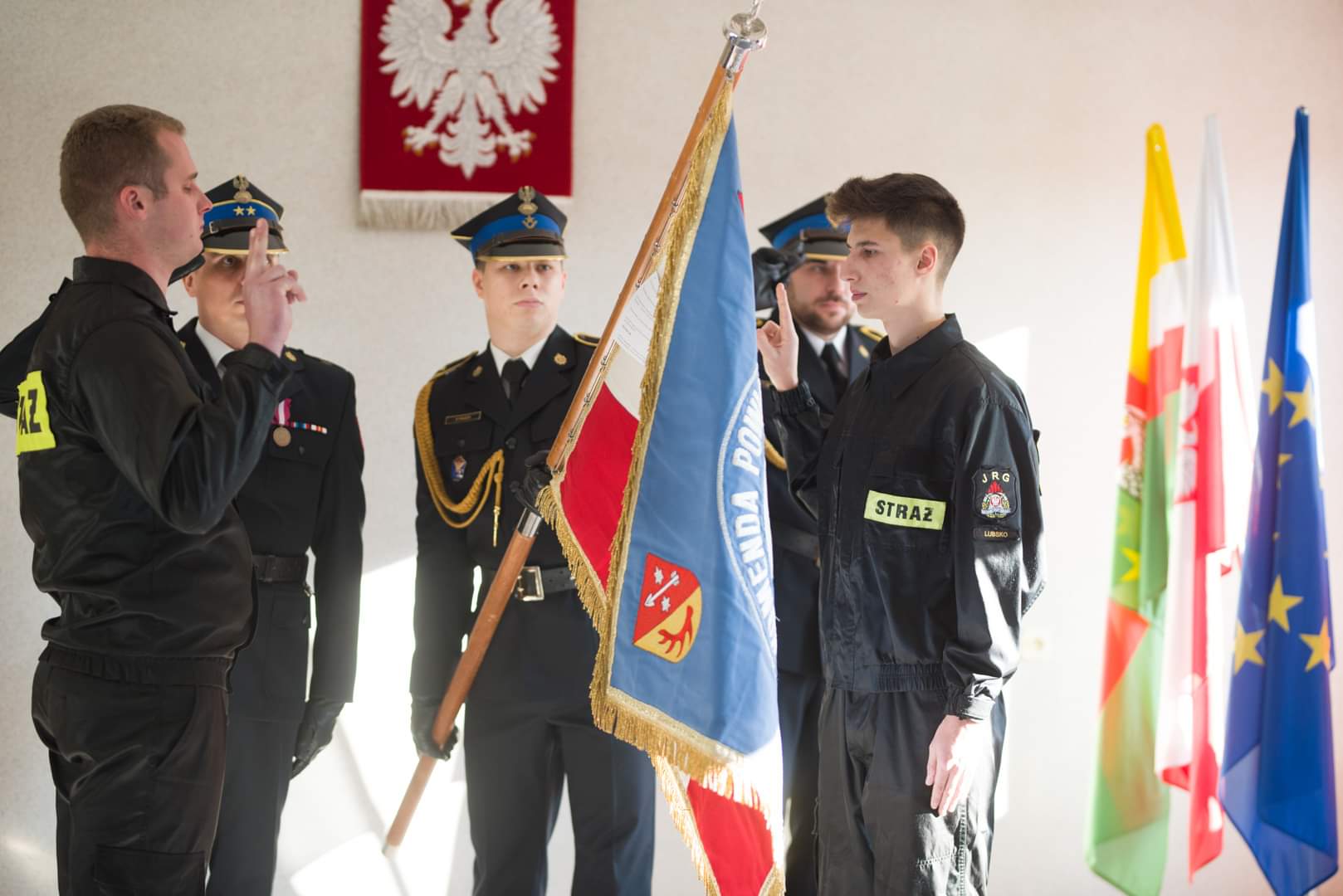 Komendant Powiatowy Państwowej Straży Pożarnej w Żarach młodszy brygadier Mariusz Morawski mianował z dniem 01 listopada 2022 roku do służby przygotowawczej na stanowisko Stażysty oraz nadał stopień Strażaka dla: Huberta LICZNERA, Jakuba ZIELONKI. Podczas apelu złożyli również ślubowanie.