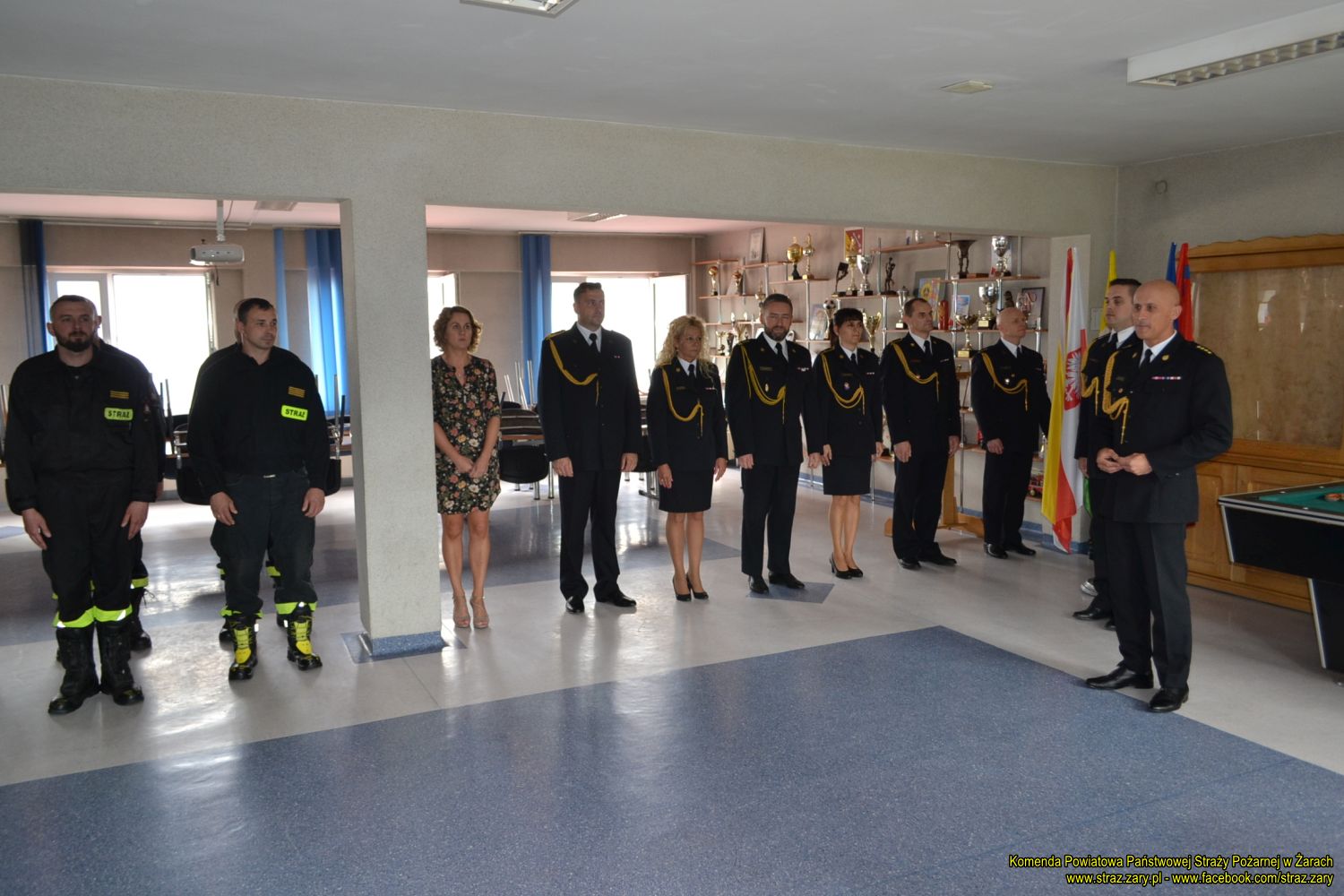 W dniu 1 lipca 2021 r. w Komendzie Powiatowej Państwowej Straży Pożarnej w Żarach odbył się uroczysty apel. W czasie uroczystości st. kpt. Mariusz Morawski Komendant Powiatowy PSP w Żarach wręczył mianowania na wyższe stanowiska służbowe, awanse w stopniach i powitał w służbie absolwenta Szkoły Aspirantów PSP w Poznaniu.
