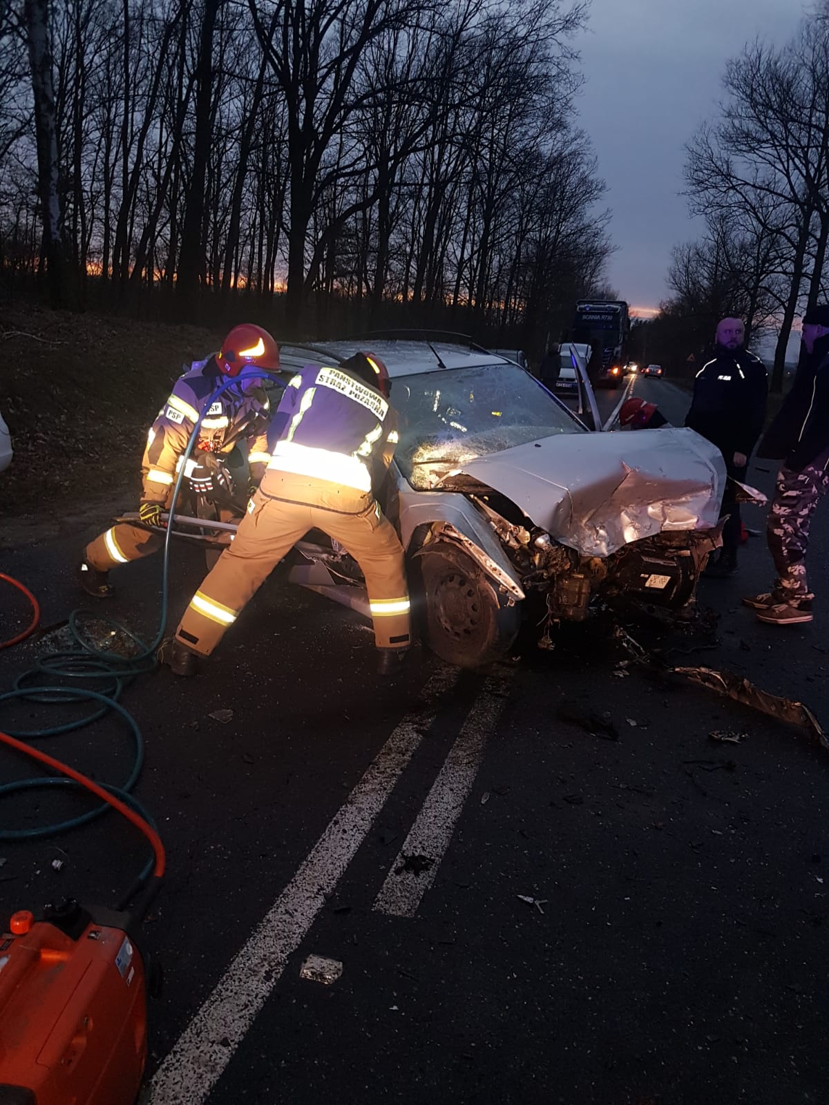 W dniu 22 lutego 2022 r. o godzinie 17:26 Dyżurny Stanowiska Kierowania Komendanta Powiatowego w Żarach otrzymał zgłoszenie o zderzeniu czołowym dwóch samochodów osobowych marki FORD FOCUS oraz OPEL ISIGNIA na drodze wojewódzkiej nr 287 przed miejscowością Drożków. Zgłaszający poinformował, że pojazdami poruszały się trzy osoby. Dyżurny Stanowiska Kierowania natychmiast zadysponował do zdarzenia dwa zastępy z JRG Żary oraz jeden OSP Lubanice. Po przybyciu zastępów na miejsce zdarzenia strażacy zastali dwie osoby poza rozbitymi pojazdami, którym natychmiast udzielono Kwalifikowanej Pomocy Przedmedycznej do momentu przyjazdu ZRM. Trzecia osoby biorąca udział w wypadku uwięziona była w rozbitym samochodzie, żeby się do niej dostać strażacy musieli użyć narzędzi hydraulicznych. Działania zastępów Straży Pożarnej polegały na zabezpieczeniu miejsca zdarzenia, wykonaniu dostępu narzędziami hydraulicznymi do osoby uwięzionej w samochodzie oraz udzielaniu Kwalifikowanej Pomocy Przedmedycznej pozostałym osobą poszkodowanym. Na miejscu prowadzonych działań obecne były trzy zespoły ratownictwa medycznego oraz dwa partole Policji. Działania służb ratowniczych trwały 3:44 min.