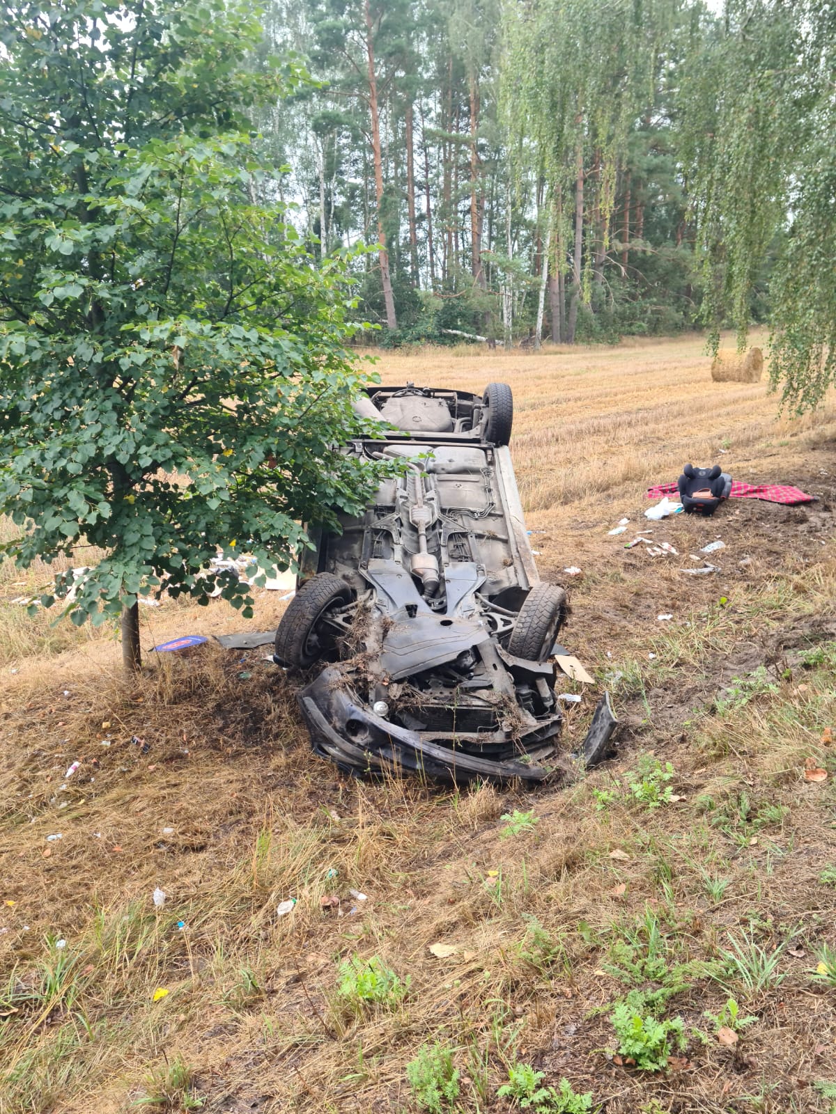 W dniu 20 sierpnia 2022r. o godz 11:32 do Stanowiska Kierowania Komendanta Powiatowego w Żarach wpłynęło zgłoszenie z Wojewódzkiego Centrum Powiadamiania Ratunkowego o dachowaniu samochodu osobowego marki Renault Scenic na drodze wojewódzkiej nr 287 przed miejscowością Górzyn. Ze zgłoszenia wynikało, że samochodem podróżowały dwie osoby i po dachowaniu opuściły pojazd o własnych siłach. Na miejsce zdarzenia natychmiast zadysponowano zastępy z JRG Lubsko i OSP Górzyn. Działania zastępów polegały na zabezpieczeniu miejsca zdarzenia, udzieleniu kwalifikowanej pierwszej pomocy poszkodowanym do czasu przybycia Zespołu Ratownictwa Medycznego i odłączeniu przewodów akumulatora w pojeździe.