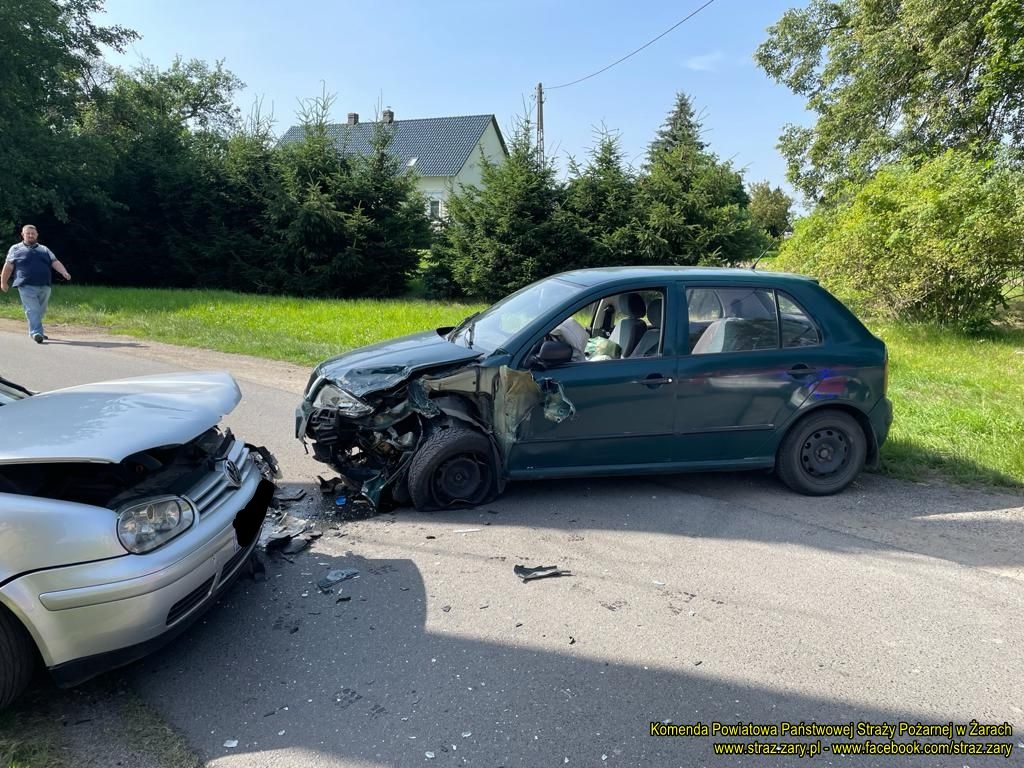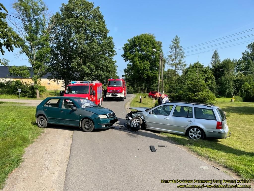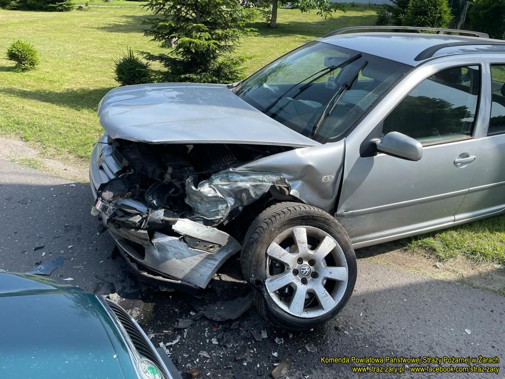 Nie całą godzinę później miała miejsce druga kolizja drogowa podczas której doszło do zderzenia dwóch samochodów osobowych w Sieniawie Żarskiej. W zdarzeniu tym strażacy udzielili pierwszej pomocy osobom poszkodowanym, które zostały zabrane przez Zespół Ratownictwa Medycznego na żarski SOR. Strażacy zabezpieczyli miejsca zdarzenia i uszkodzone pojazdy.