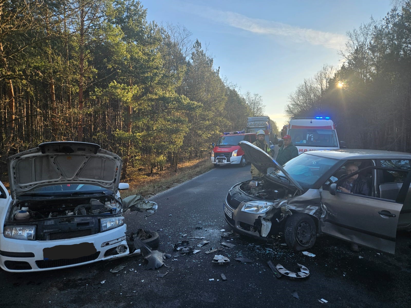 W dniu 29 stycznia 2024 r. o godzinie 8:21 Dyżurny Stanowiska Kierowania Komendanta Powiatowego PSP w Żarach otrzymał zgłoszenie o wypadku komunikacyjnym na drodze powiatowej nr DP1108F w miejscowości Olszyna. Dyżurny Stanowiska Kierowania natychmiast zadysponował do zdarzenia zastępy z JRG Żary oraz OSP Trzebiel. Po przybyciu zastępów na miejsce zdarzenia strażacy zastali dwa samochody osobowe po zderzenie czołowo-boczne. Na szczęście w zdarzeniu nikt nie doznał obrażeń. W działaniach również udział brały: patrol Policji, patrol Straży Granicznej oraz Zespó Ratownictwa Medycznego.
