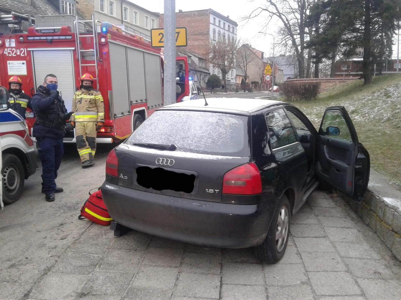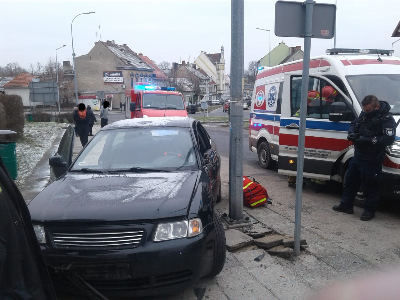 Kolizja samochodu Audi z latarnią na ul. Poznańskiej w Lubsku