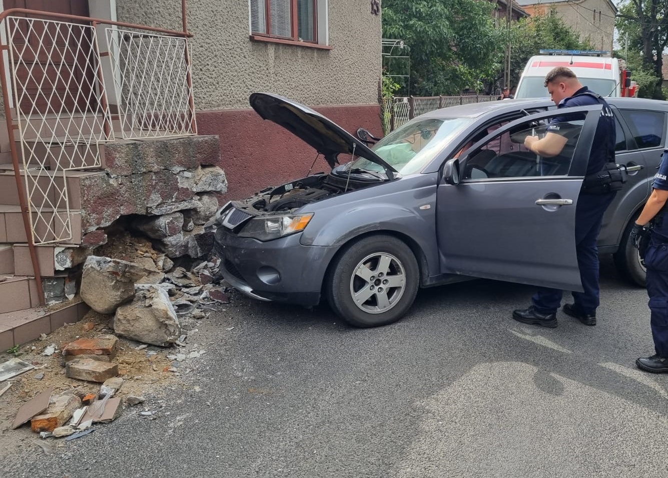 Kolizja samochodu osobowego z budynkiem w m. Kadłubia