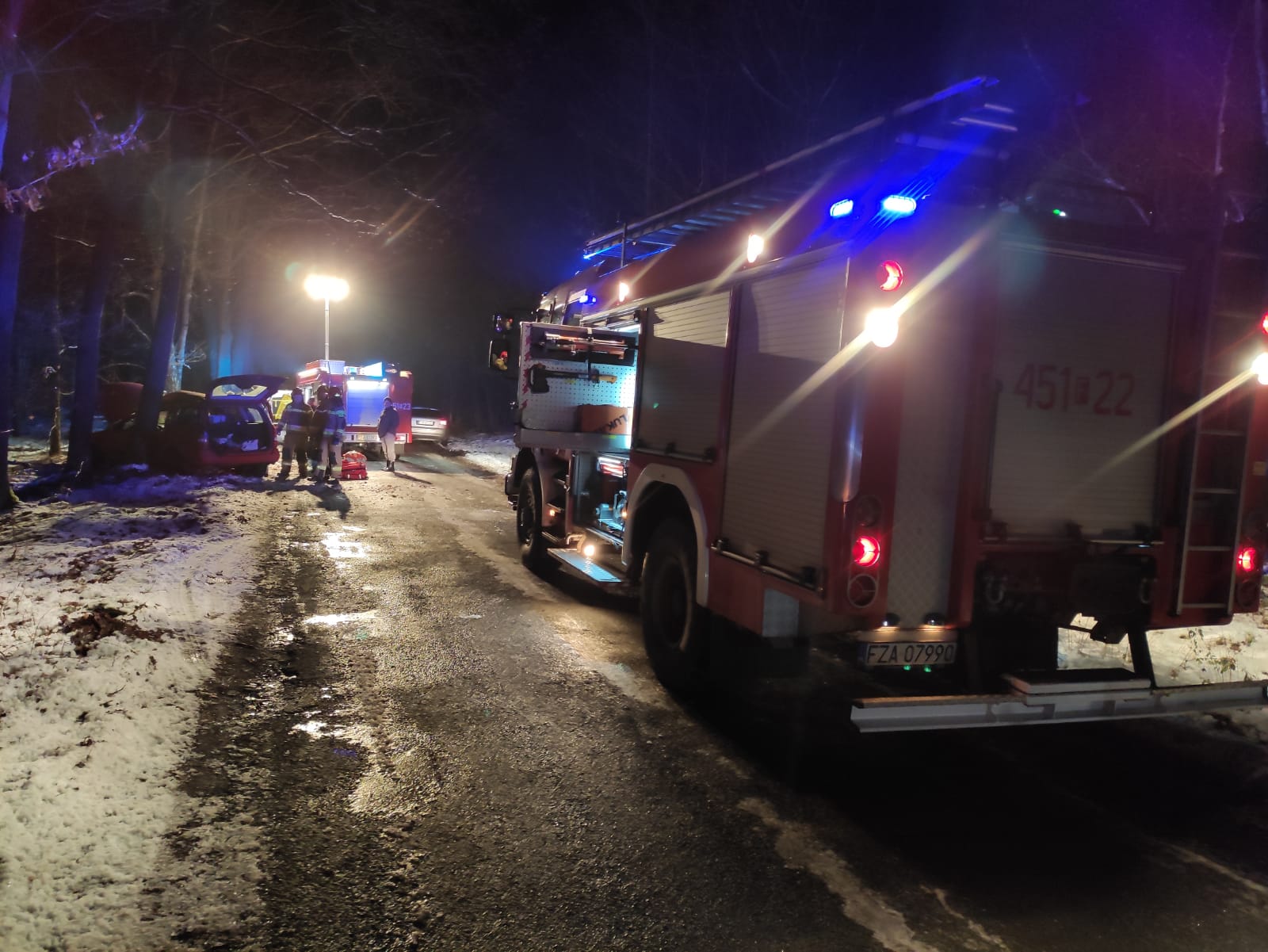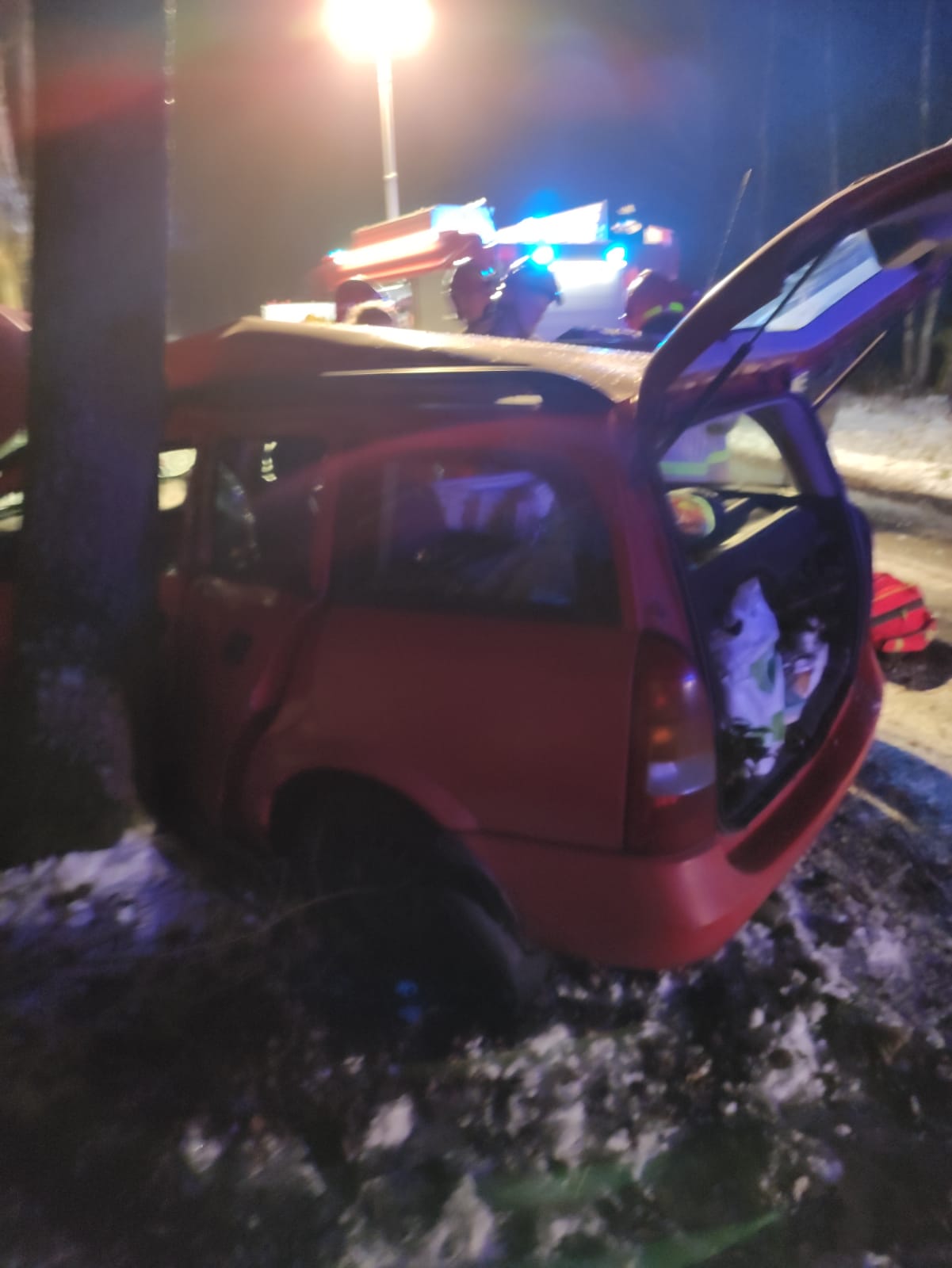 Kolizja samochodu osobowego z drzewem przy miejscowości Górka