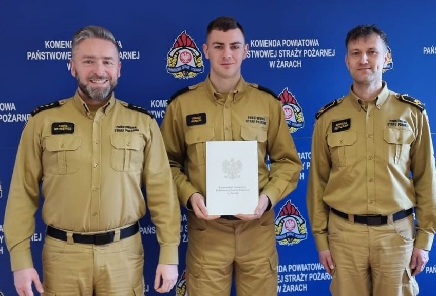 St. str. Tomasz Górecki zakończył okres służby przygotowawczej na stanowisku stażysty i został mianowany do służby stałej oraz awansowany przez st. bryg. Pawła Hryniewicza - Komendanta Powiatowego PSP w Żarach. Awans na stanowisko Technika w Wydziale Operacyno – Kontrolno Rozpoznawczym został wręczony przez komendanta w obecności mł.asp. Mariusza Jędrzejka – wykonującego obowiązki Naczelnika Wydziału.