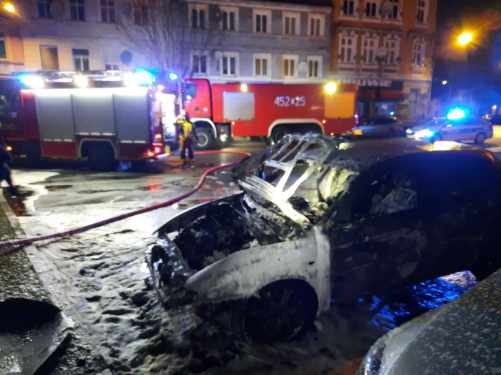 Nocny pożar samochodu w centrum Lubska