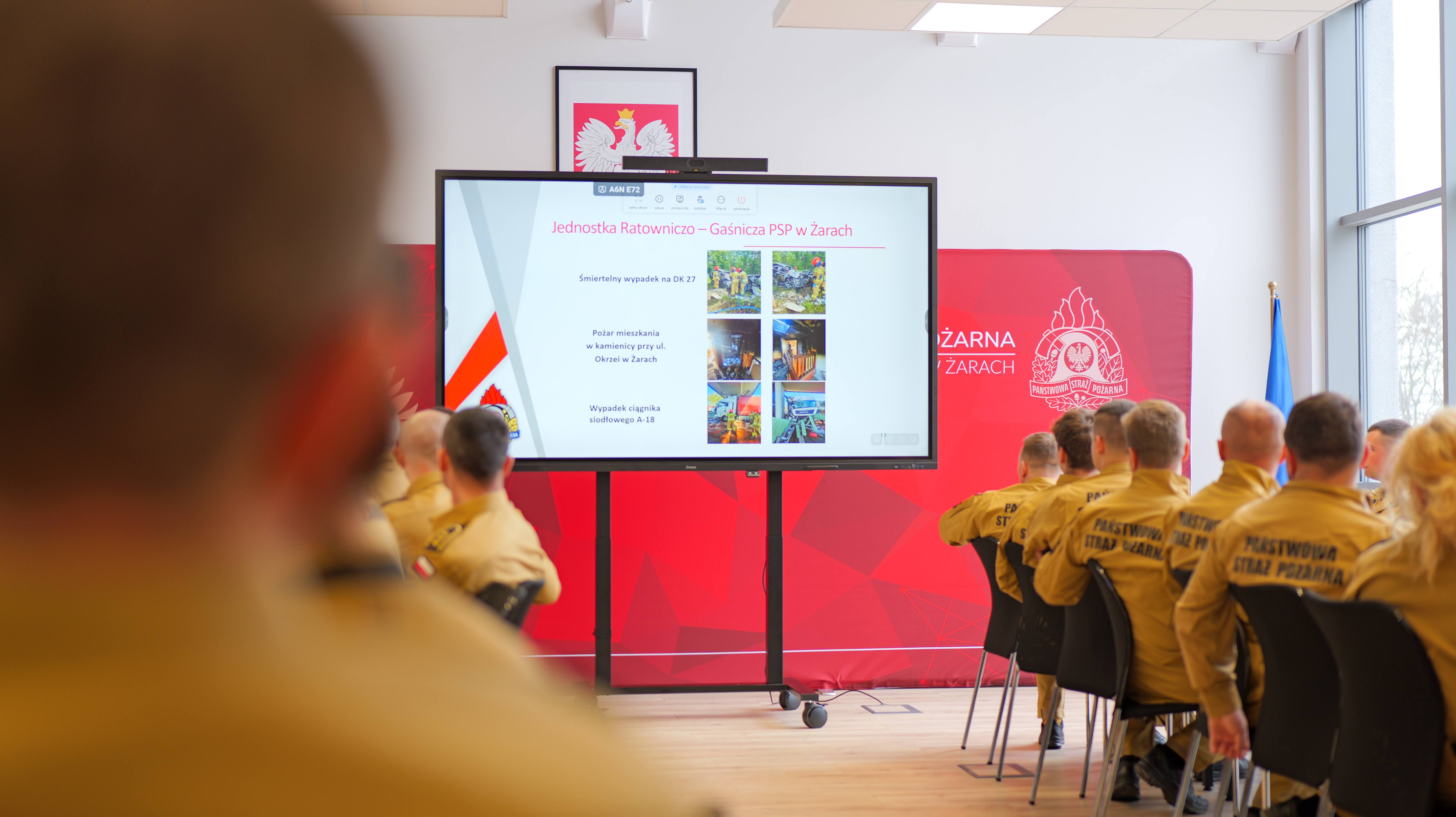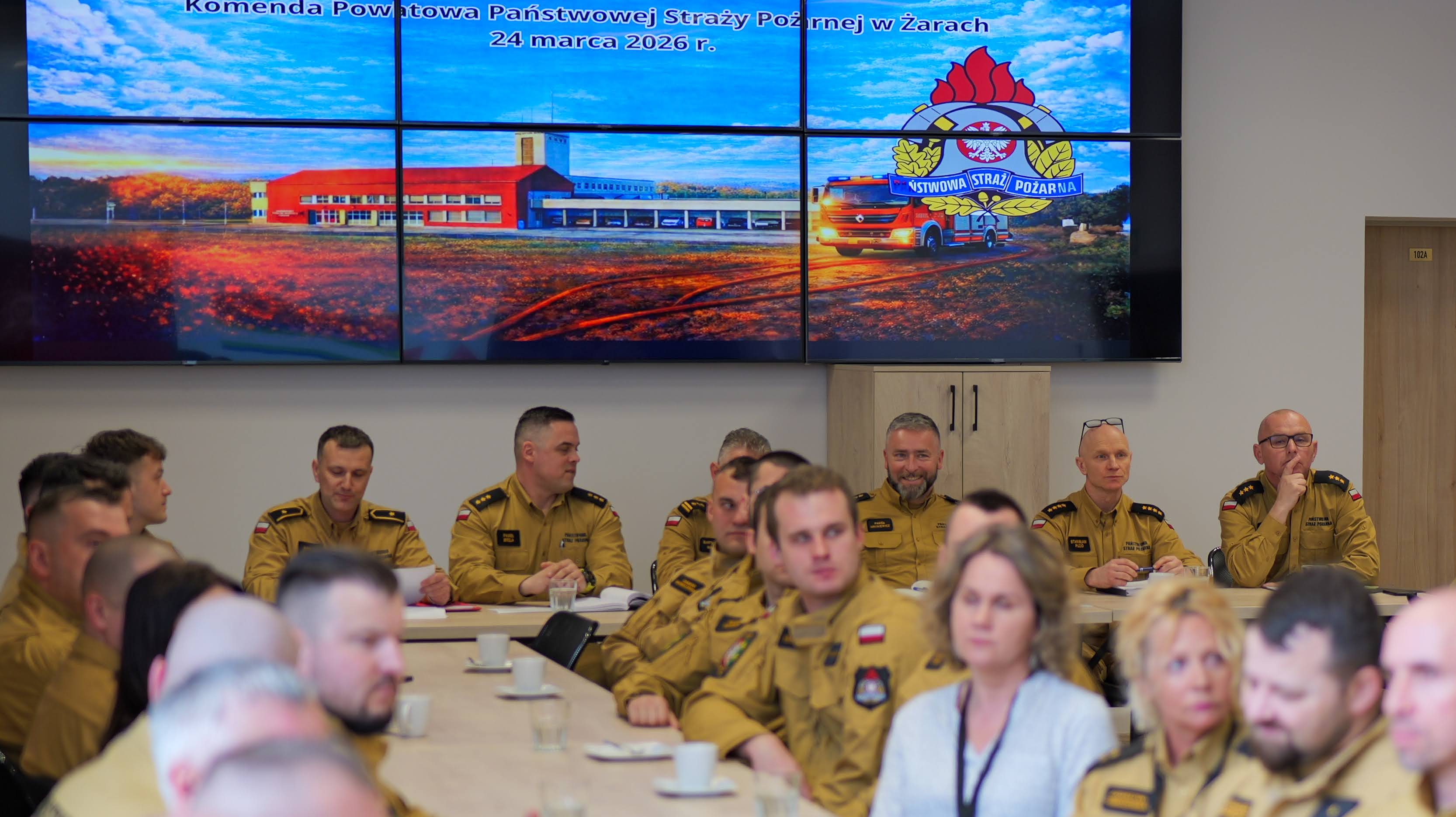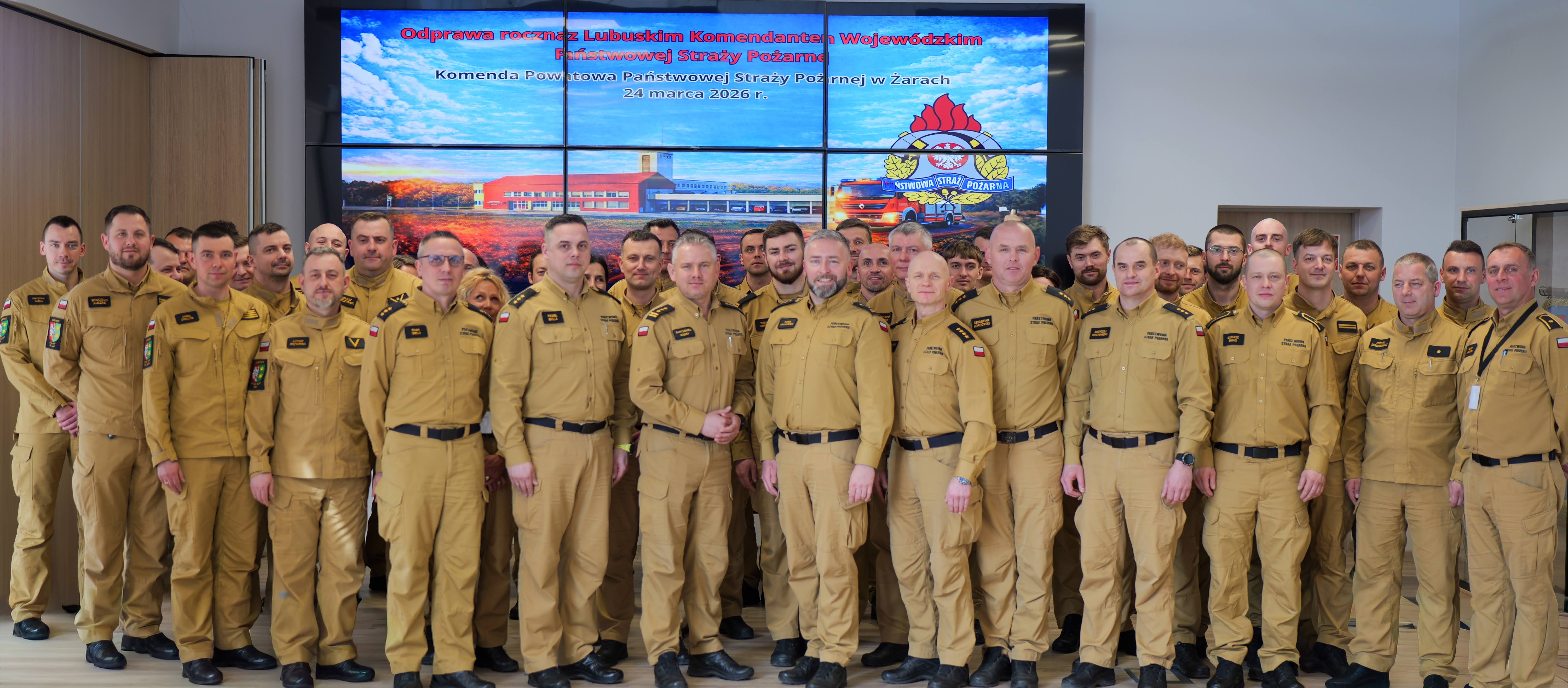 W dniu 24 marca 2026 roku w Komendzie Powiatowej Państwowej Straży Pożarnej w Żarach odbyła się odprawa roczna podsumowująca działalność komendy za 2025 rok, w której udział wziął st. bryg. Bartłomiej Mądry – Zastępca Lubuskiego Komendanta Wojewódzkiego PSP. Meldunek o rozpoczęciu odprawy złożył kpt. Sebastian Horodyski - Dowódca JRG w Żarach.