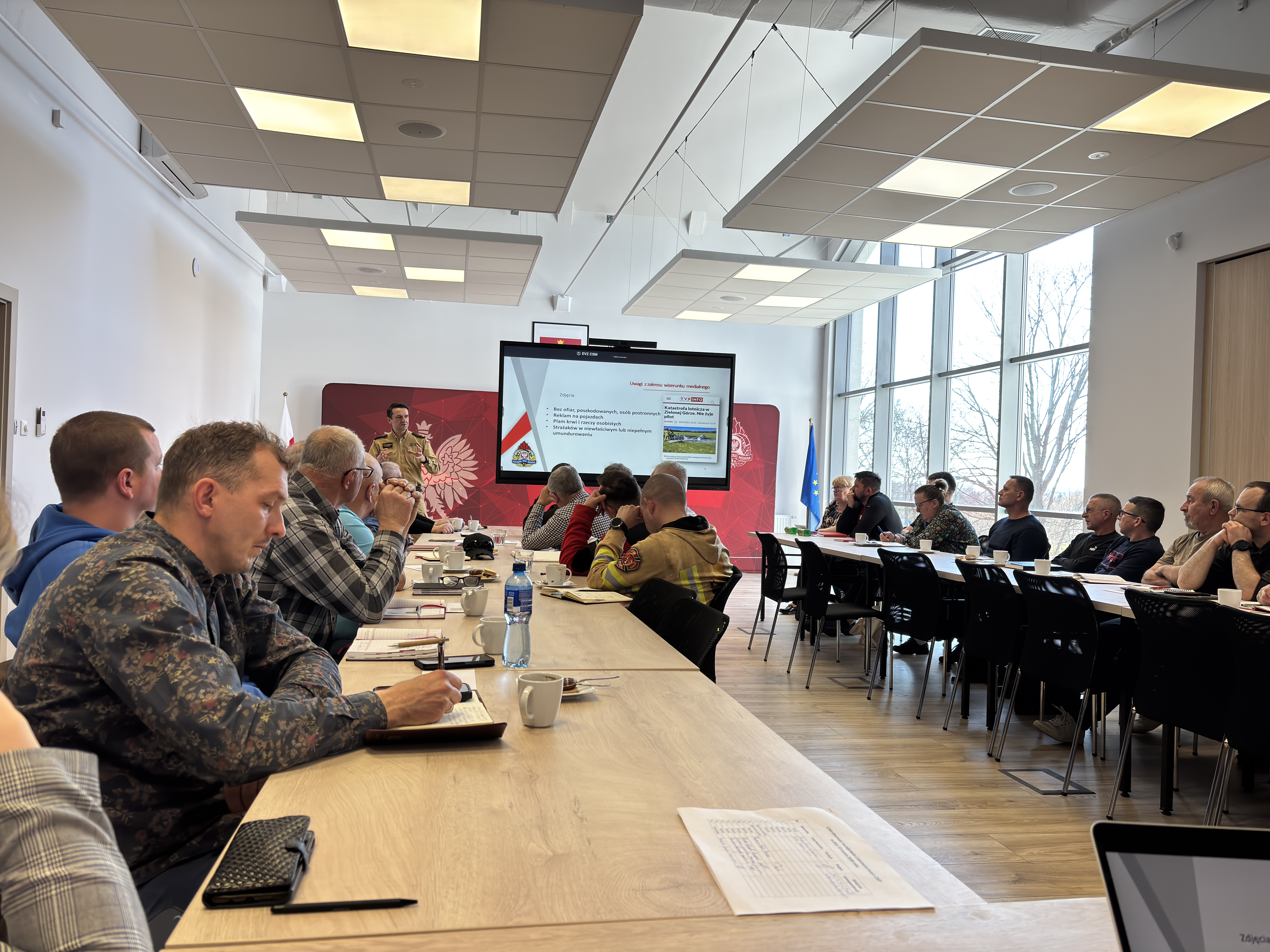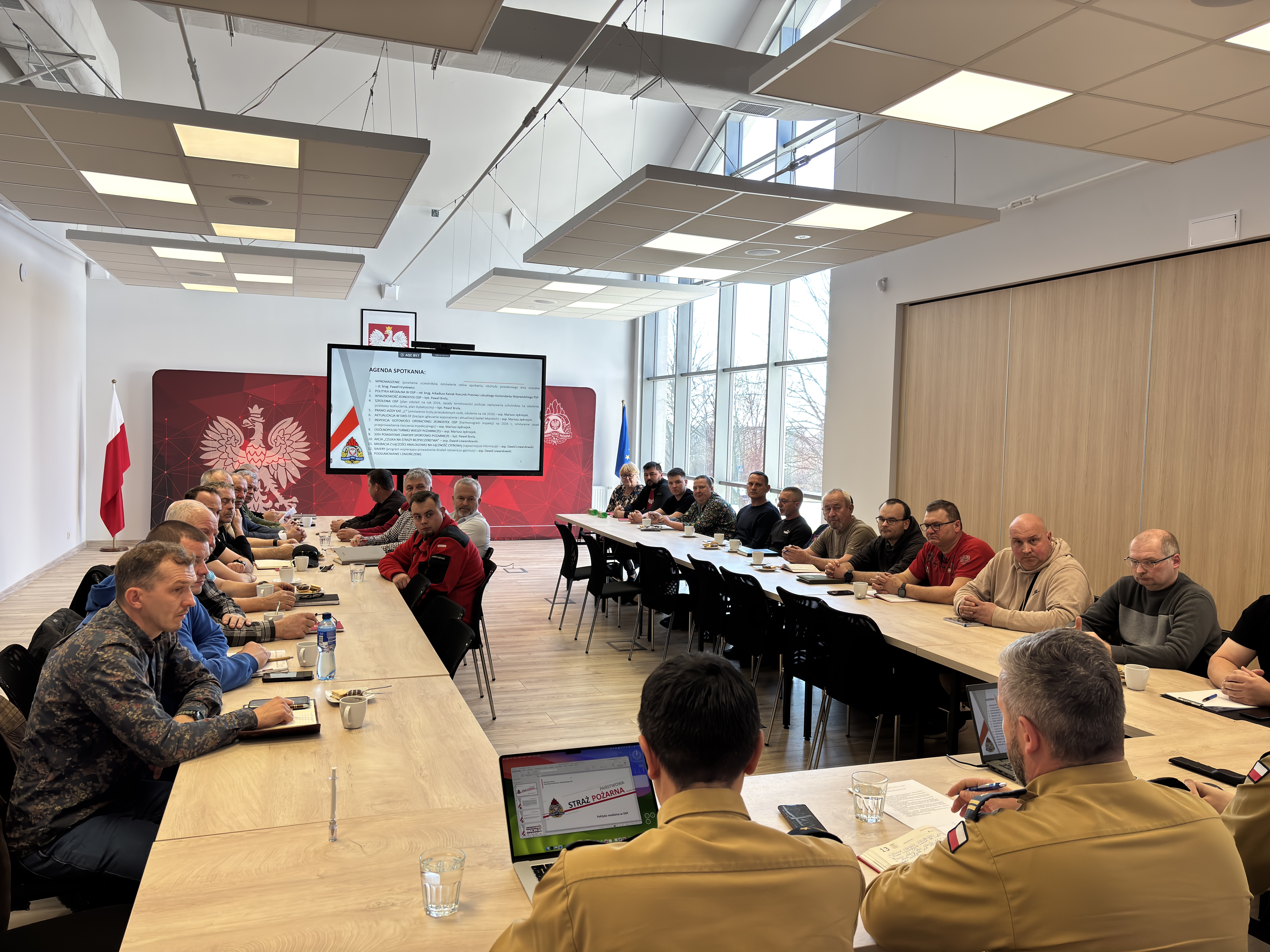 13 marca 2026 r. w siedzibie Komendy Powiatowej Państwowej Straży Pożarnej w Żarach odbyła się odprawa z prezesami i naczelnikami jednostek OSP z terenu powiatu żarskiego z kierownictwem i pionem operacyjnym z KP PSP Żary.
