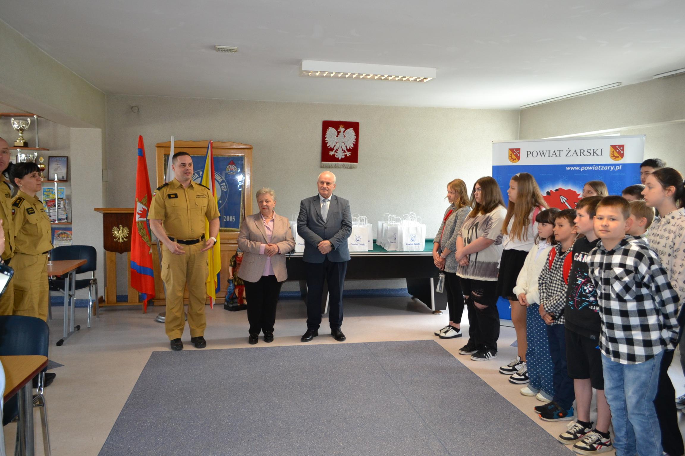 12 kwietnia 2024 roku w Komendzie Powiatowej Państwowej Straży Pożarnej w Żarach odbyły się eliminacje powiatowe Ogólnopolskiego Turnieju Wiedzy Pożarniczej „Młodzież Zapobiega Pożarom”. Uczestników turnieju przywitał Starosta Powiatu Żarskiego – Pan Józef Radzion, który pełni także funkcję Prezesa Zarządu Oddziału Powiatowego ZOSP RP w Żarach, Pani Anna Ślawska – Radna Powiatu Żarskiego oraz mł. kpt. Paweł Brela – p.o. Zastępcy Komendanta Powiatowego PSP w Żarach.