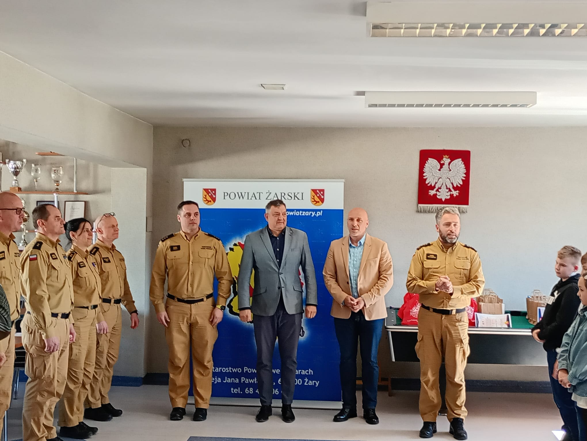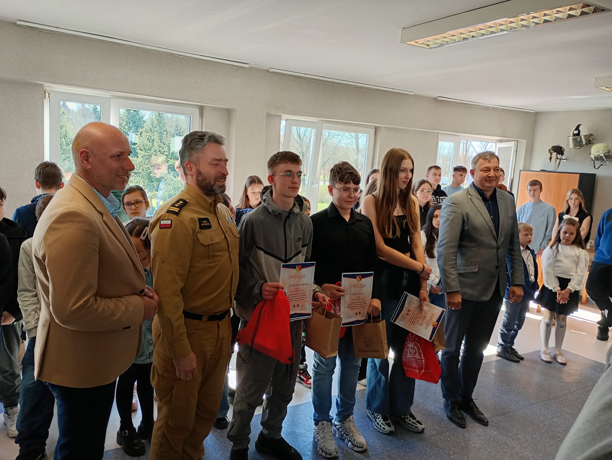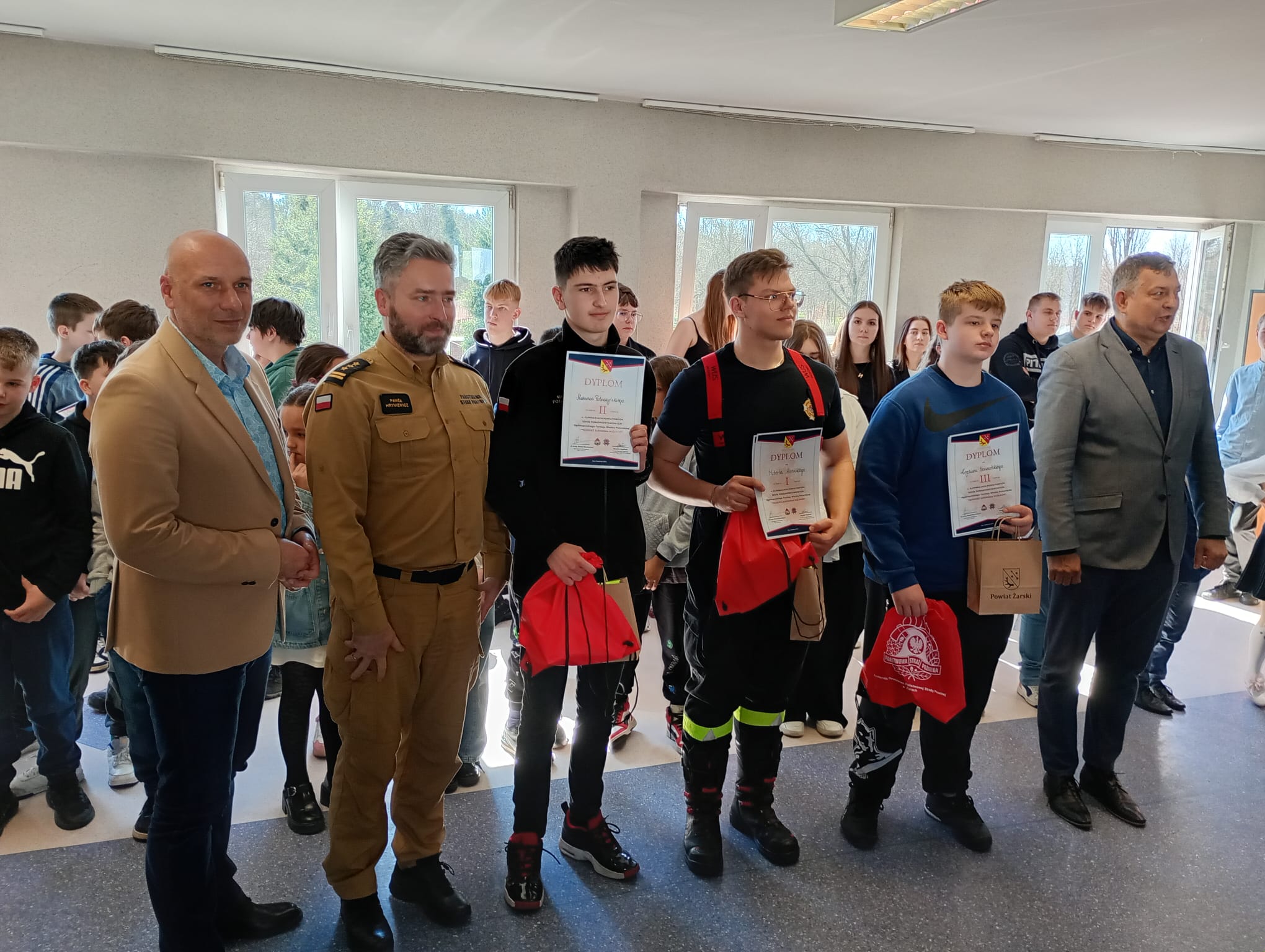 3 kwietnia 2025 roku w Komendzie Powiatowej Państwowej Straży Pożarnej w Żarach odbyły się eliminacje powiatowe Ogólnopolskiego Turnieju Wiedzy Pożarniczej „Młodzież Zapobiega Pożarom”. Uczestników turnieju przywitał Starosta Powiatu Żarskiego – Pan Bogdan Kępiński, który pełni także funkcję Prezesa Zarządu Oddziału Powiatowego ZOSP RP w Żarach, Wicestarosta Powiatu Żarskiego – Pan Wojciech Kasprów, który pełni także funkcję Sekretarza Zarządu Oddziału Powiatowego ZOSP RP w Żarach oraz Komendant Powiatowy PSP w Żarach – st. bryg. Paweł Hryniewicz.