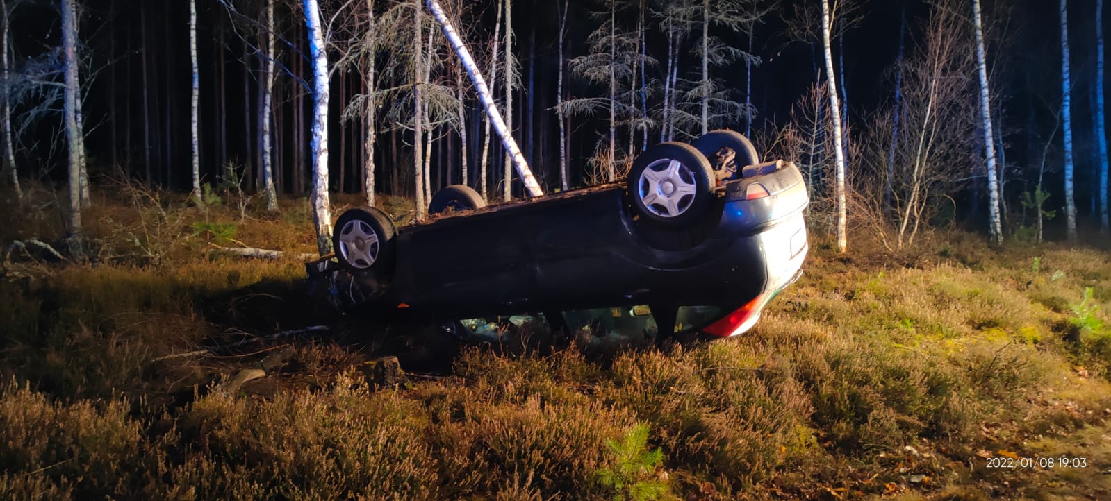 W dniu 8 stycznia o godzinie 18:23 do Stanowiska Kierowania Komendanta Powiatowego w Żarach wpłynęło zgłoszenie o wypadku samochodu na drodze powiatowej w kierunku miejscowości Pietrzyków. Do zdarzenia zostały zadysponowane zastępy z Jednostki Ratowniczo-Gaśniczej Żary i jednostki OSP Lipinki Łużyckie. Z chwilą przybycia na miejsce wypadku pierwszego zastępu straży pożarnej zastano na poboczu drogi po dachowaniu samochód osobowy marki Ford Focus. Trzy osoby podróżujące znajdowały się po za pojazdem. Działania zastępów polegały na zabezpieczeniu miejsca wypadku, udzieleniu kwalifikowanej pierwszej pomocy osobie poszkodowanej, odłączeniu przewodów akumulatora w samochodzie. Osoba poszkodowana została przekazana dla Zespołu Ratownictwa Medycznego i przewieziona na SOR w Żarach celem przeprowadzenia dalszej diagnostyki medycznej.