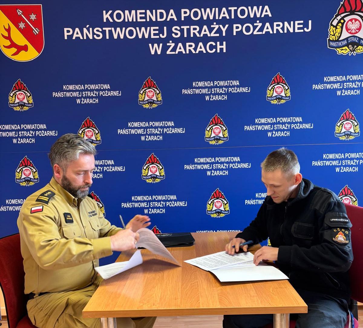 Zgodnie z zapisami ustawy o ochotniczych strażach pożarnych w ramach szkoleń prowadzonych przez Państwową Straż Pożarną są realizowane kursy przygotowujące do uzyskiwania przez strażaków ratowników OSP kwalifikacji i uprawnień do prowadzenia pojazdów uprzywilejowanych o dopuszczalnej masie całkowitej powyżej 3,5 t. W powiecie żarskim, po przeprowadzonych analizach potrzeb zapewnienia kierowców samochodów ciężarowych w jednostkach OSP, zakwalifikowano trzech druhów. Realizując nałożone obowiązki st. bryg. Paweł Hryniewicz - Komendant Powiatowy PSP w Żarach zawarł umowy z trzema strażakami ratownikami OSP na pełnienie funkcji kierowcy w OSP Złotnik, OSP Lubanice i OSP Lipinki Łużyckie na okres 5 lat, liczony od momentu uzyskania kwalifikacji i uprawnień prawa jazdy kategorii C. W ramach zawartych umów za szkolenie druhów OSP w ośrodku nauki jazdy zapłaci Komenda Wojewódzka PSP w Gorzowie Wlkp.