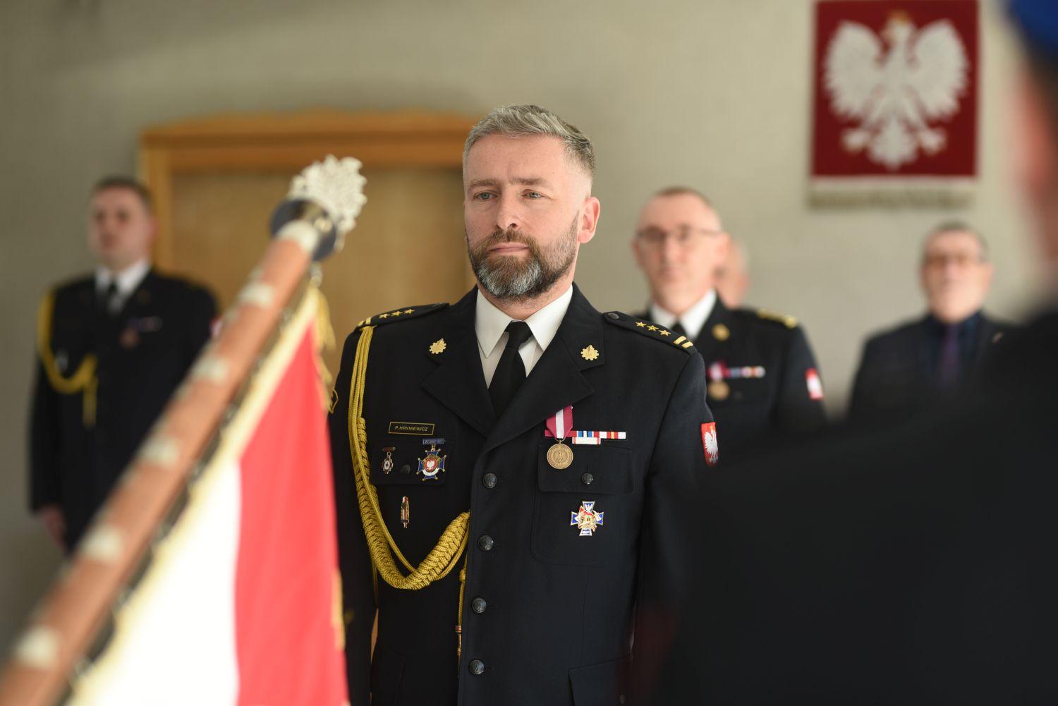 Pan st. bryg. mgr inż. poż. Paweł Hryniewicz jest strażakiem Państwowej Straży Pożarnej od 27 lat, w tym oficerem żarskiej komendy od 24 lat. Jest żaraninem od urodzenia, po ukończeniu I Liceum Ogólnokształcącego w Żarach im .Bolesława Prusa rozpoczął w 1997 r. służbę w Państwowej Straży Pożarnej jako student podchorąży w Szkole Głównej Służby Pożarniczej w Warszawie. W 2001 r. po ukończeniu studiów uzyskał tytuł inżyniera pożarnictwa, został promowany na pierwszy stopień oficerski i podjął służbę w KP PSP w Żarach w żarskiej jednostce ratowniczo gaśniczej na stanowisku starszego ratownika awansując na stanowisko dowódcy zastępu. W 2002 został przeniesiony do pełnienia służby w Wydziale Operacyjno Szkoleniowym zajmując kolejno stanowiska inspektora, młodszego specjalisty, specjalisty, kierownika sekcji. W 2009 awansował na stanowisko Naczelnika Wydziału Operacyjno, Kontrolno – Rozpoznawczego. Z dniem 1 stycznia 2013 r. został powołany na stanowisko Zastępcy Komendanta Powiatowego Państwowej Straży Pożarnej w Żarach. W trakcie służby, podnosił swoje kwalifikacje. Ukończył studia magisterskie w Szkole Głównej Służby Pożarniczej w Warszawie, studia podyplomowe z zakresu informatyki na Uniwersytecie Zielonogórskim w Zielonej Górze oraz studia podyplomowe w zakresie BHP na Politechnice Wrocławskiej we Wrocławiu. W trakcie służby wyróżniony: Brązowym Medalem za Długoletnią Służbę, Srebrną Odznaką Zasłużony dla Ochrony Przeciwpożarowej, Złotym Medalem za Zasługi dla Pożarnictwa, Odznaką za zasługi dla związku Emerytów i Rencistów Pożarnictwa, Odznaką Honorową PCK IV stopnia, Odznaką Pamiątkową Wojskowej Ochrony Przeciwpożarowej, Odznaką zasłużony Honorowy dawca Krwi.
