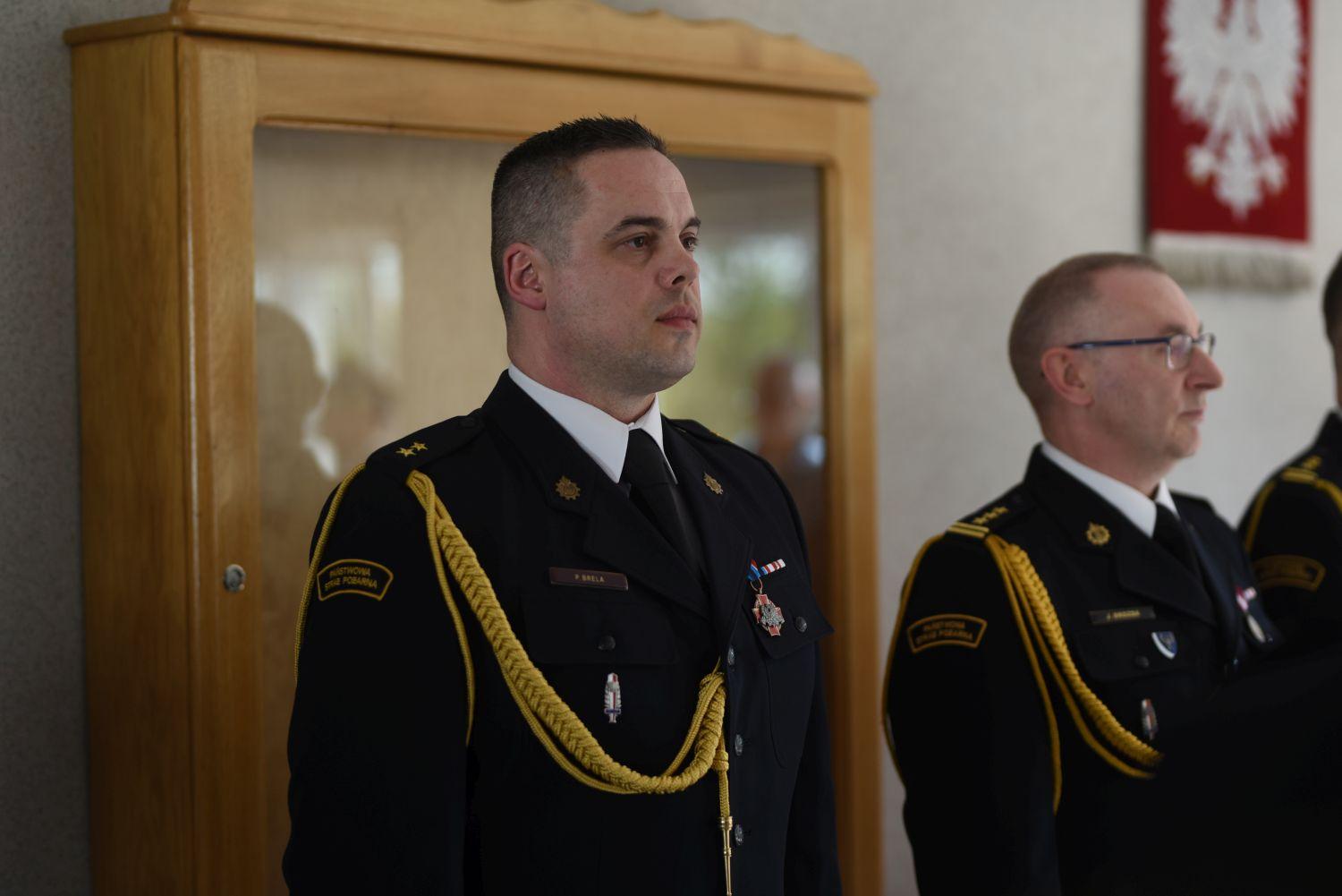 Pan mł. kpt. mgr inż. poż. Paweł Brela jest strażakiem Państwowej Straży Pożarnej od 18 lat. Jest żaraninem od urodzenia. Po ukończeniu I Liceum Ogólnokształcącego w Żarach im .Bolesława Prusa, a następnie ukończeniu w 2004 r. studiów magisterskich na Wydziale Inżynierii Lądowej i Środowiska Uniwersytetu Zielonogórskiego w Zielonej Górze rozpoczął w 2006 r. służbę w Państwowej Straży Pożarnej jako stażysta w Jednostce Ratowniczo-Gaśniczej w Lubsku. W 2010 r. został przeniesiony do pełnienia służby w Jednostce Ratowniczo-Gaśniczej w Żarach na stanowisko młodszego ratownika. W 2013 r. został przeniesiony do pełnienia służby w Wydziale Operacyjno, Kontrolno – Rozpoznawczym zajmując kolejno stanowiska starszego technika, starszego inspektora, starszego inspektora sztabowego. W 2021 awansował na stanowisko Naczelnika Wydziału Operacyjno, Kontrolno – Rozpoznawczego. W trakcie służby, podnosił swoje kwalifikacje. W 2007 r. ukończył kurs kwalifikacyjny szeregowych PSP w Ośrodku Szkolenia Komendy Wojewódzkiej PSP w Gorzowie Wlkp. z siedzibą w Świebodzinie. W 2012 ukończył szkolenie uzupełniające strażaka jednostki ochrony przeciwpożarowej w Szkole Podoficerskiej PSP w Bydgoszczy uzyskując stopień sekcyjnego. W 2016 ukończył Kwalifikacyjny Kurs Zawodowy w Szkole Aspirantów PSP w Poznaniu uzyskując tytuł technika pożarnictwa i stopień młodszego aspiranta. W 2021 r. ukończył studia inżynierskie (niestacjonarne I stopnia dla strażaków w służbie stałej) w Szkole Głównej Służby Pożarniczej w Warszawie na Wydziale Inżynierii Bezpieczeństwa Pożarowego. W trakcie służby wyróżniony: Brązową Odznaką Zasłużony dla Ochrony Przeciwpożarowej i Złotym Medalem za Zasługi dla Pożarnictwa.