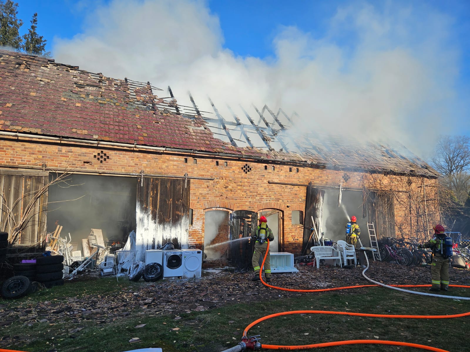 Pożar budynku gospodarczego (stodoły) w Królowie