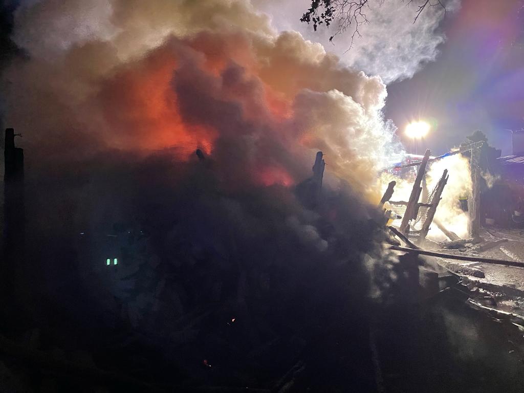 Z chwilą przyjazdu na miejsce zdarzenia strażacy zastali budynek gospodarczy, który cały objęty był ogniem, w pobliżu znajdował się budynek mieszkalny. Działania Straży Pożarnej polegały na zabezpieczeniu miejsca zdarzenia, oświetleniu terenu działań, ugaszeniu palącego się budynku oraz pracach rozbiórkowych.