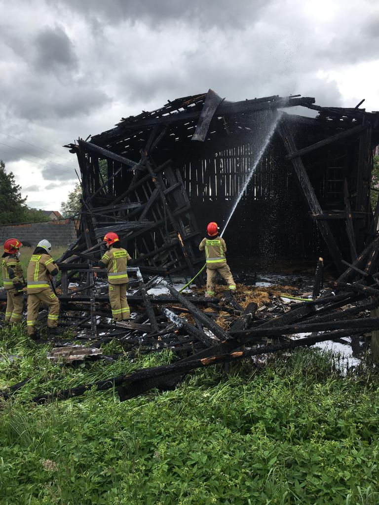 Przybyłe na miejsce zdarzenia jednostki ochrony przeciwpożarowej ustaliły, że pożarem objęta została drewniana stodoła o powierzchni 50 m2, która stanowiła zagrożenie dla budynku mieszkalnego.