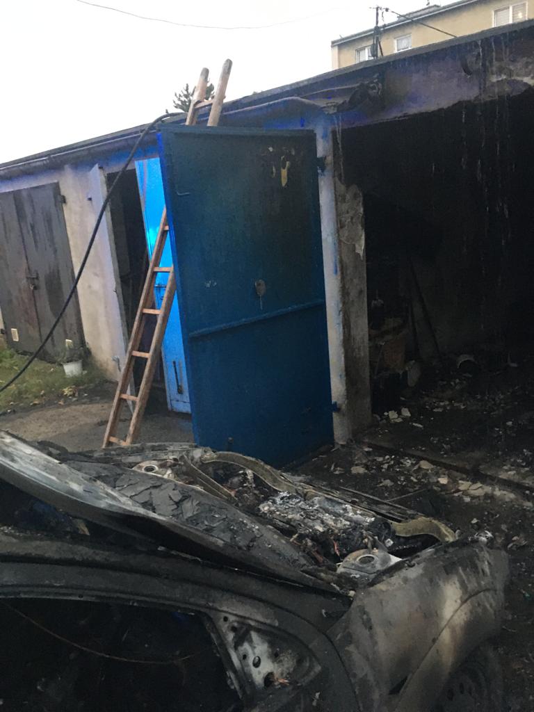 W wyniku rozpoznania przeprowadzonego przez przybyłe zastępy ustalono, że w garażu znajduje się samochód osobowy marki Ford Focus, który również objęty był pożarem. Działania polegały na zabezpieczeniu miejsca zdarzenia, ugaszeniu wnętrza palącego się garażu oraz samochód.