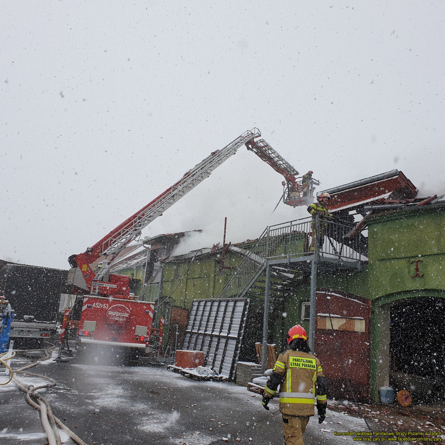 W dniu 18 marca br. o godzinie 10:36 dyżurny Stanowiska Kierowania Komendanta Powiatowego Państwowej Straży Pożarnej w Żarach przyjął zgłoszenie o pożarze hali magazynowej (hurtownia materiałów budowlanych) w miejscowości Lutol. Do zdarzenia natychmiast zadysponowano zastępy z JRG Lubsko, OSP Górzyn, OSP Stara Woda, OSP Chocicz, OSP Jasień oraz OSP Zabłocie. W chwili przyjazdu jednostek straży pożarnej na miejsce zdarzenia pożarem objęte było poddasze i dach palącego się obiektu. Działania zastępów polegały na zabezpieczeniu miejsca zdarzenia, ugaszeniu pożaru, prowadzeniu prac rozbiórkowych spalonej konstrukcji dachowej z jednoczesnym dogaszaniem zarzewi ognia. Działania trwały ponad 7 godzin. Udział w akcji gaśniczej brało 11 zastępów i 37 strażaków.